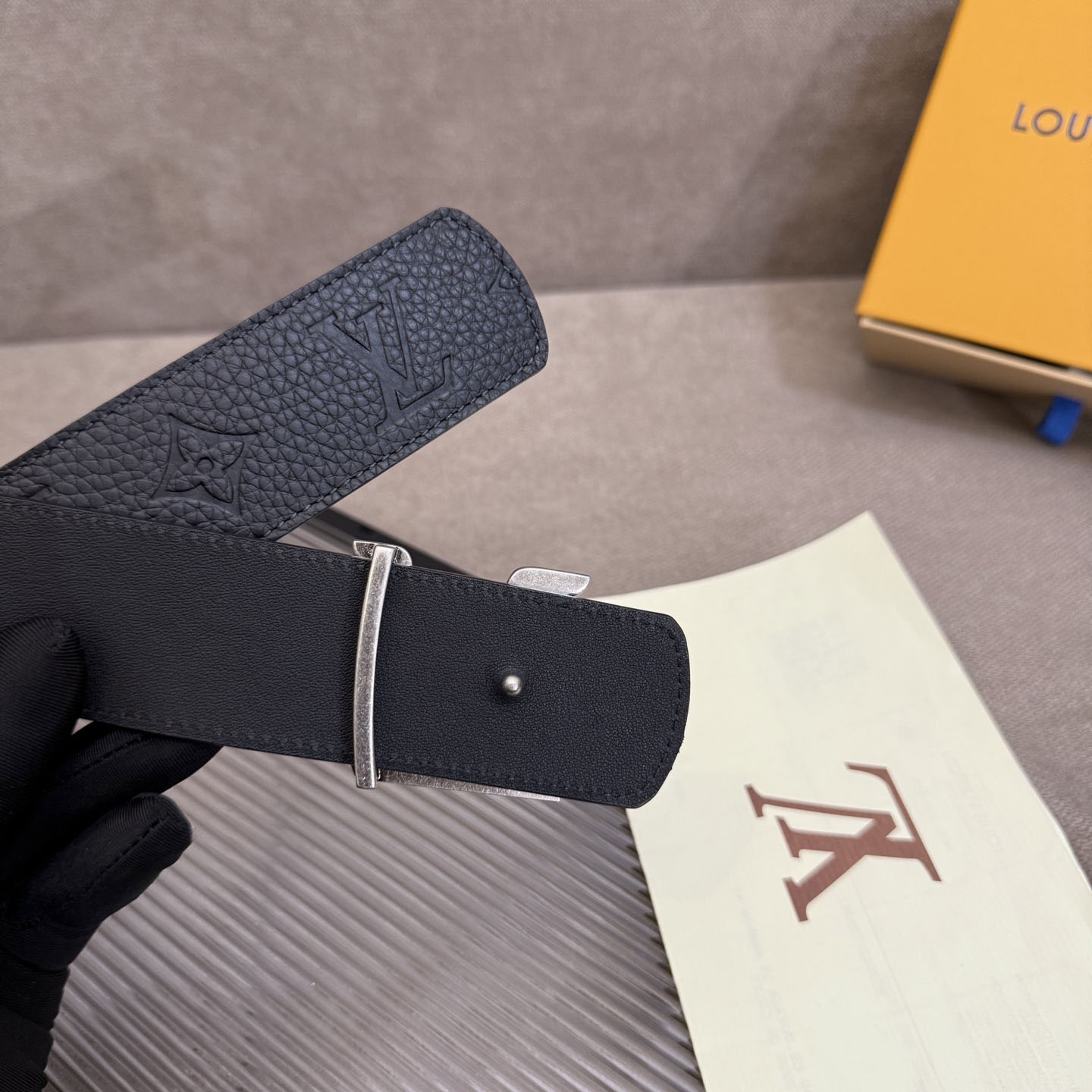 Louis Vuitton Men’s Dimension Reversible Belt In Black Calfskin With Gold/Silver/Black Hardware 40mm