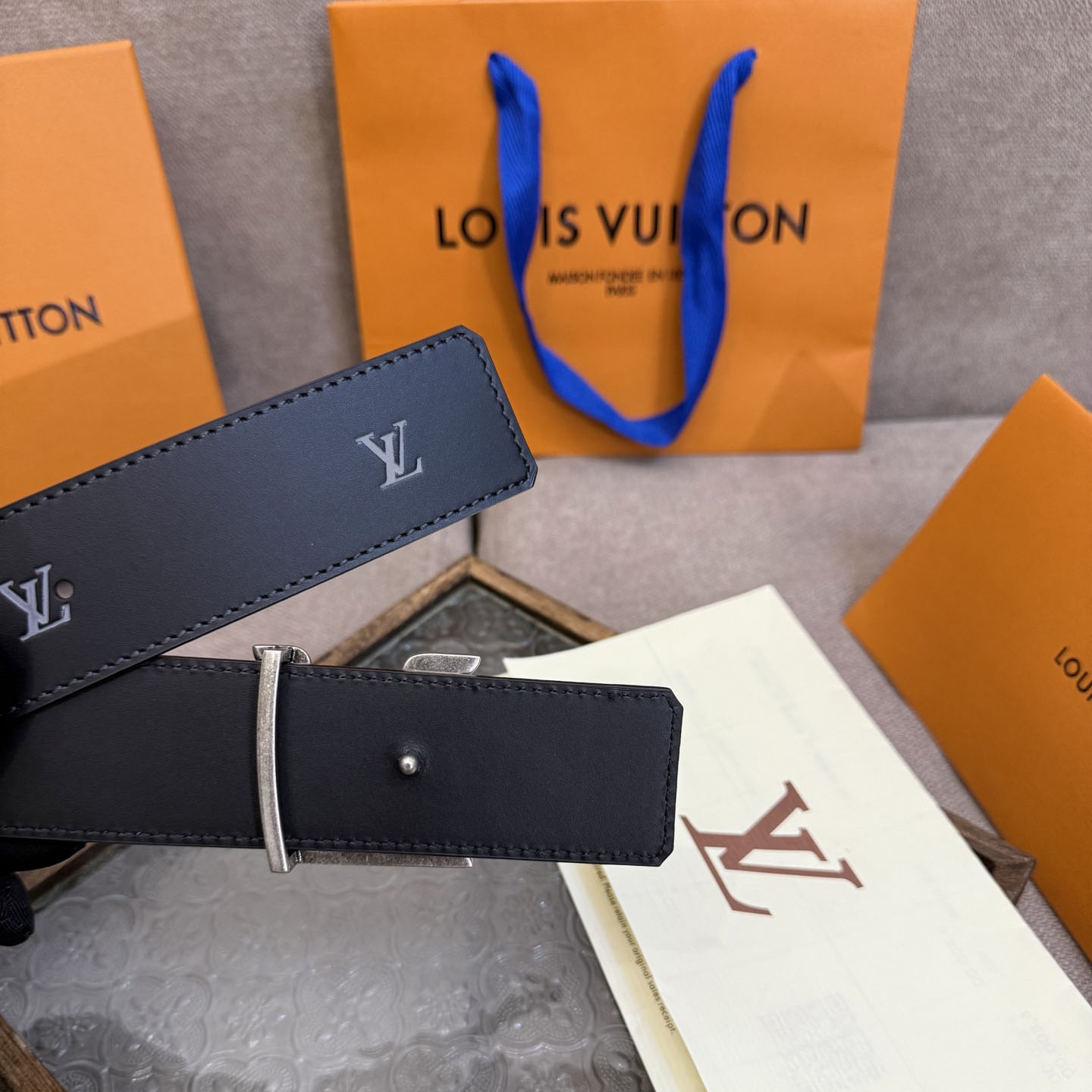 Louis Vuitton Men’s Initiales Blason Reversible Belt In Black Calfskin With Gold/Silver/Black Hardware 40mm