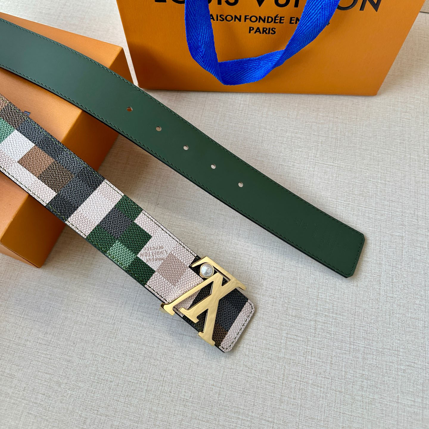 Louis Vuitton Men’s Initiales Pearls Reversible Belt In Green/Red Damier Canvas With Gold/Silver Hardware 40mm