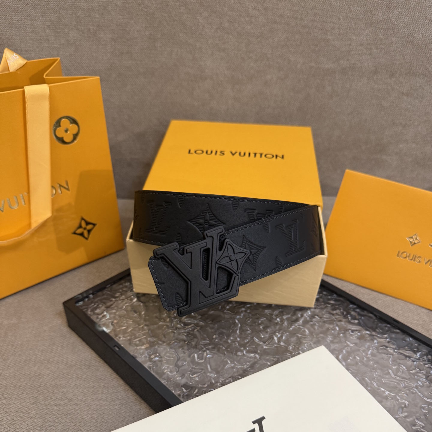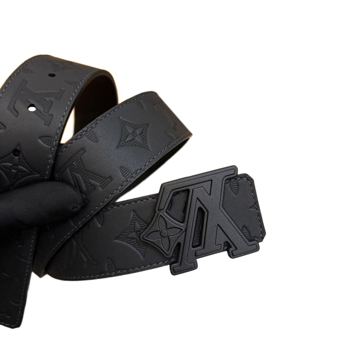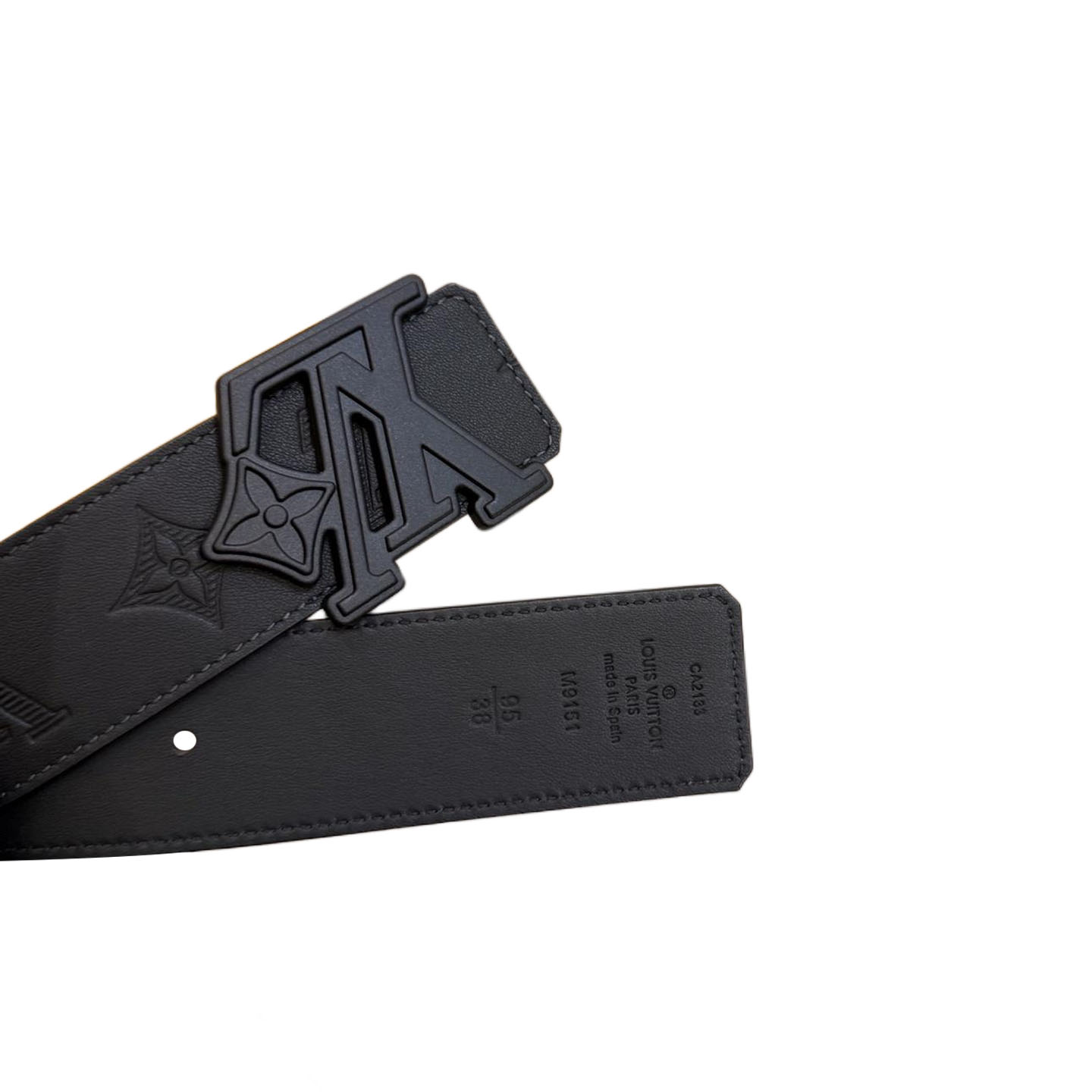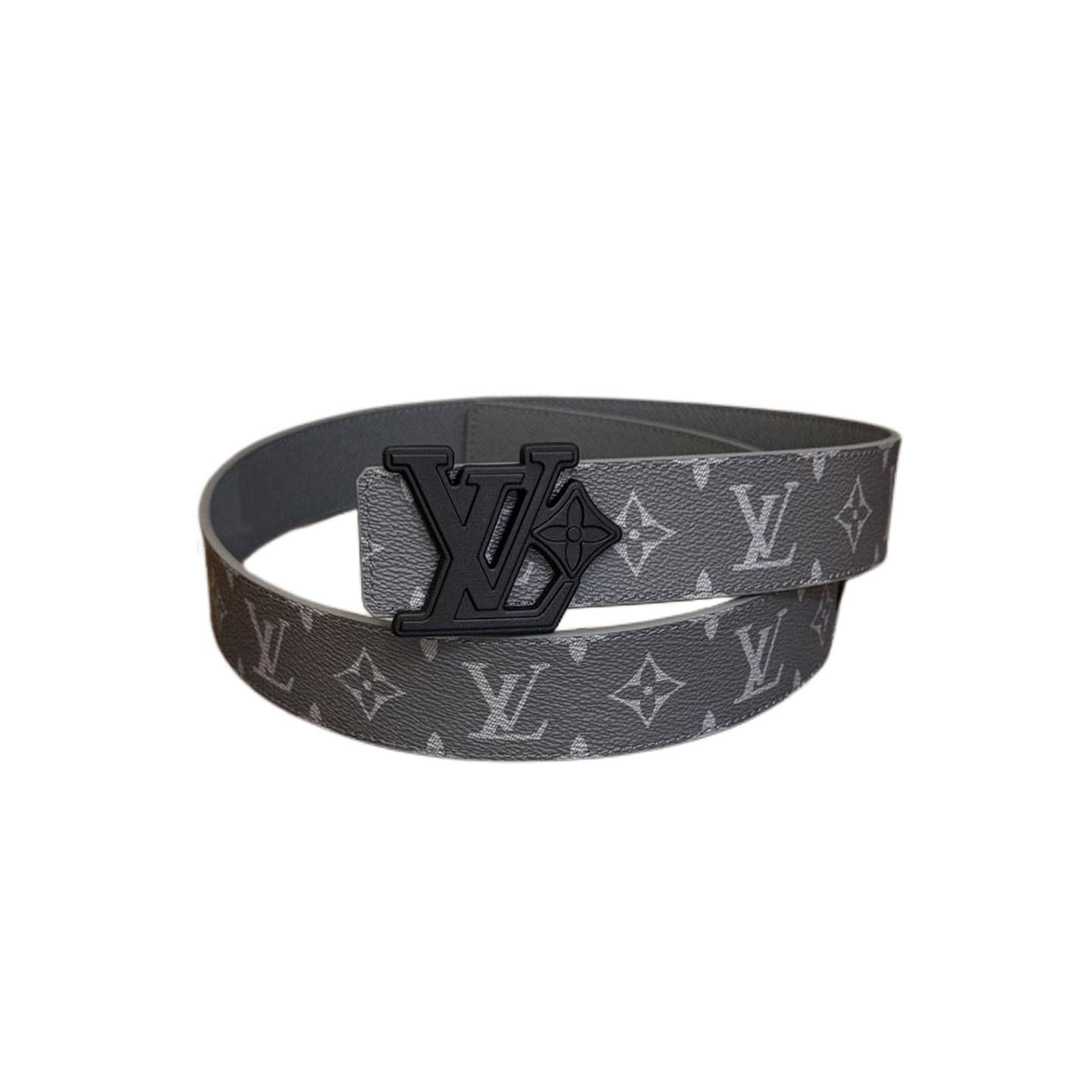 Louis Vuitton Men’s LV Flower Buckle Belt In White/Black/Grey/Blue Calfskin And White/Grey/Blue Monogram Canvas 40mm