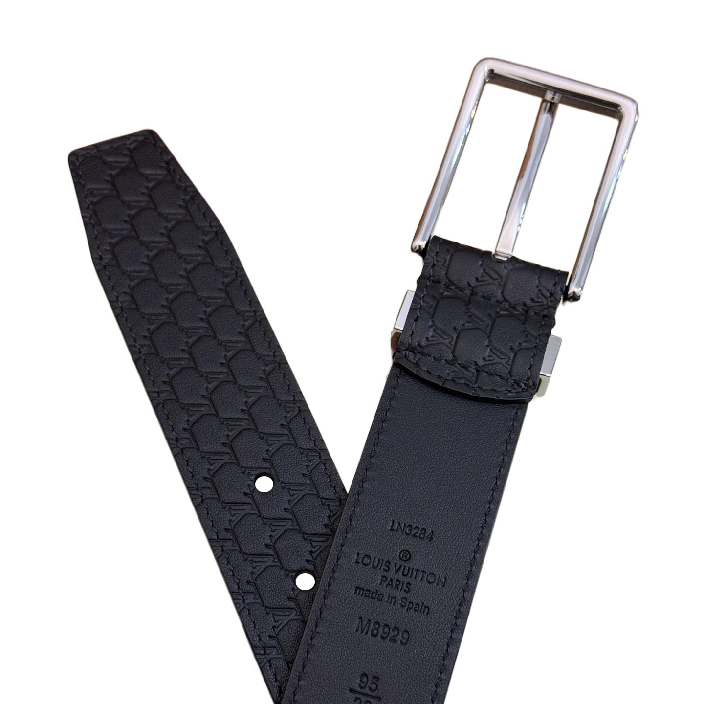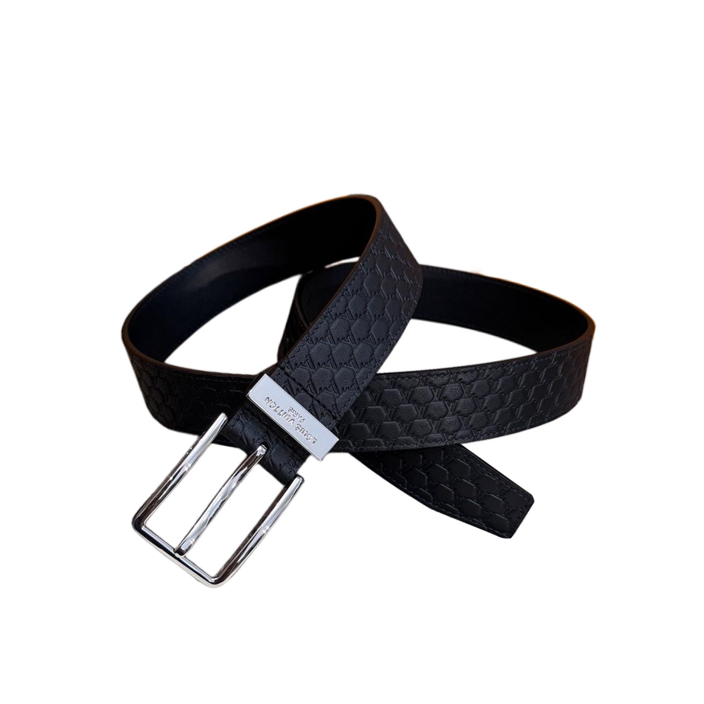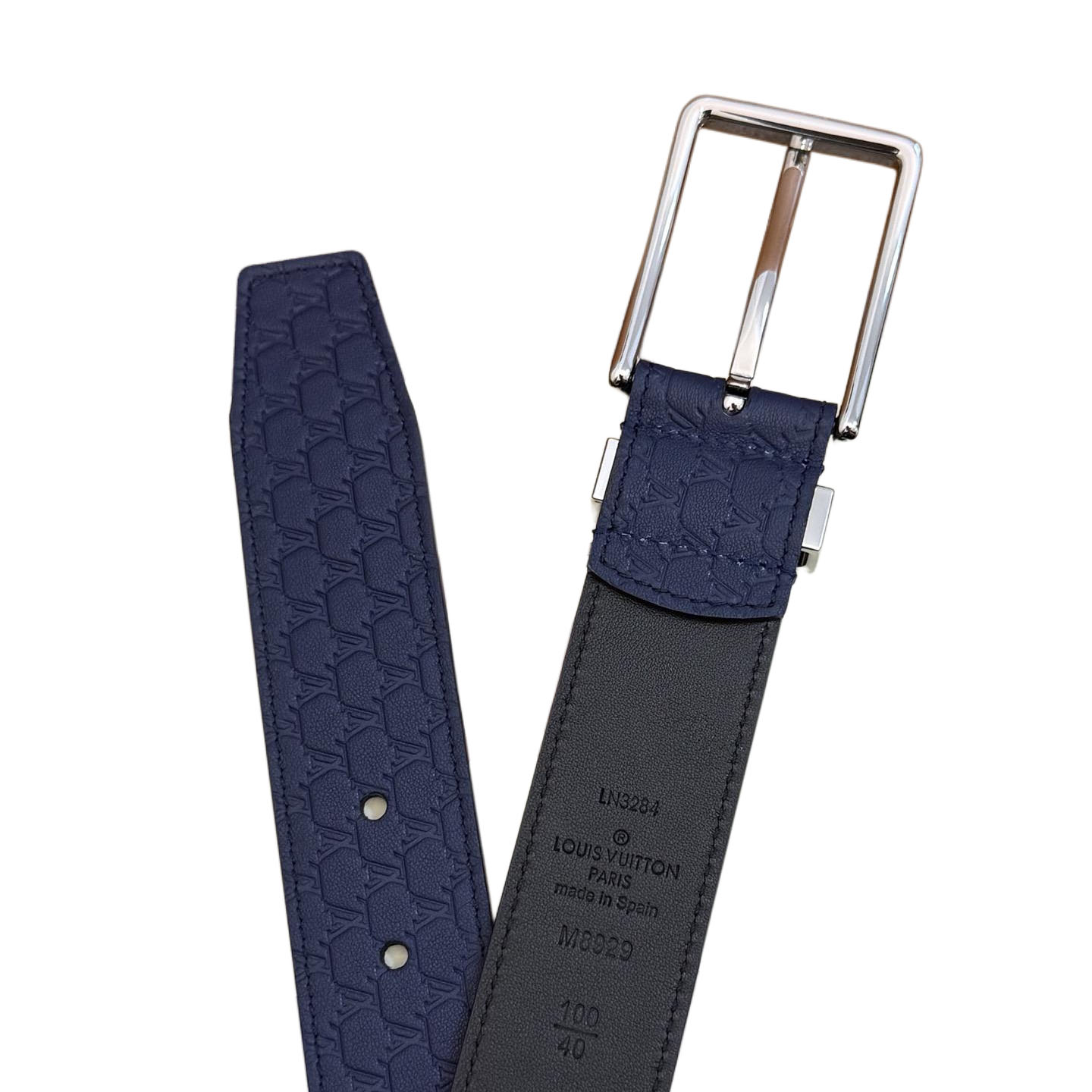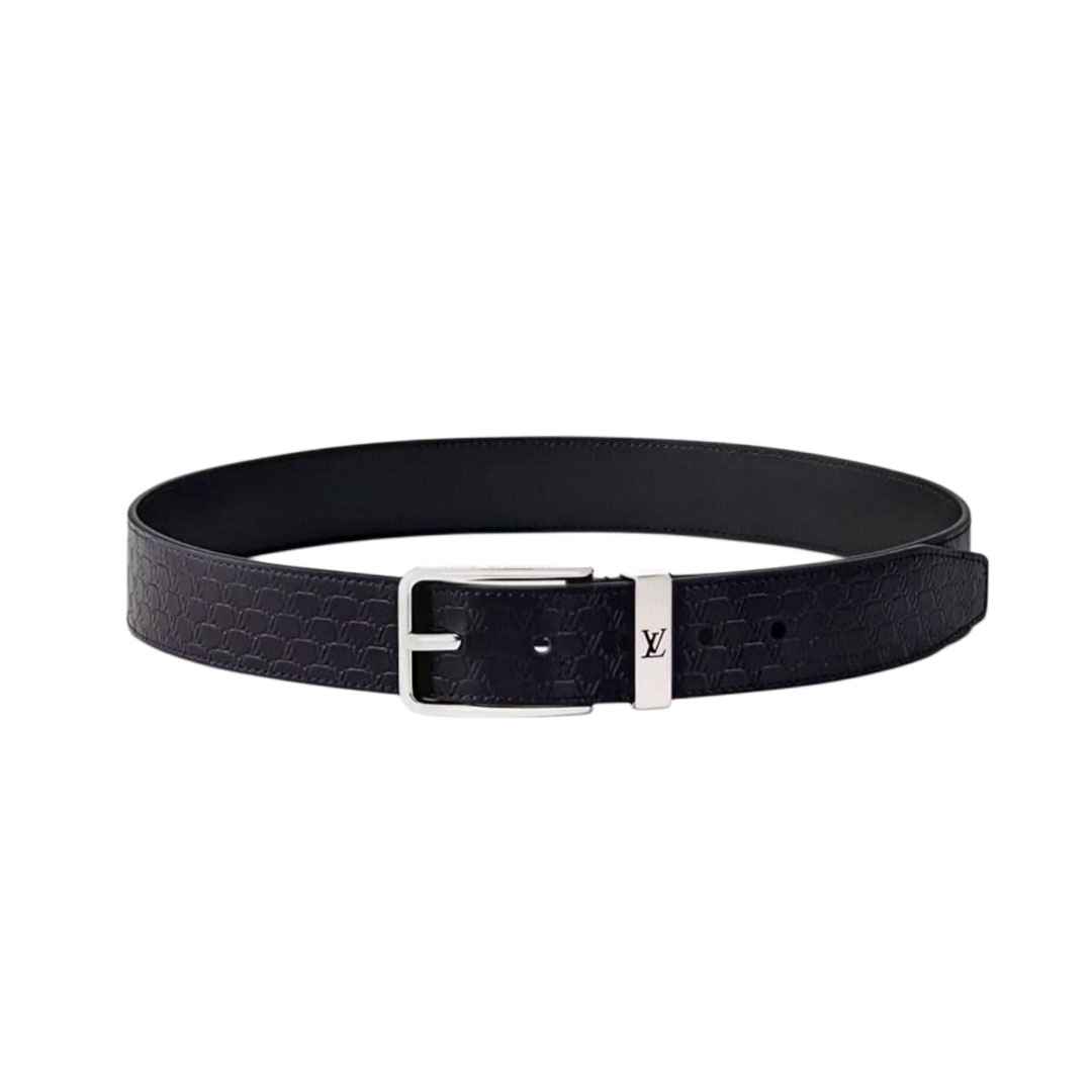 Louis Vuitton Men’s Pont Neuf Belt In Blue/Black Logo-Embossed Calfskin With Silver Hardware 35mm
