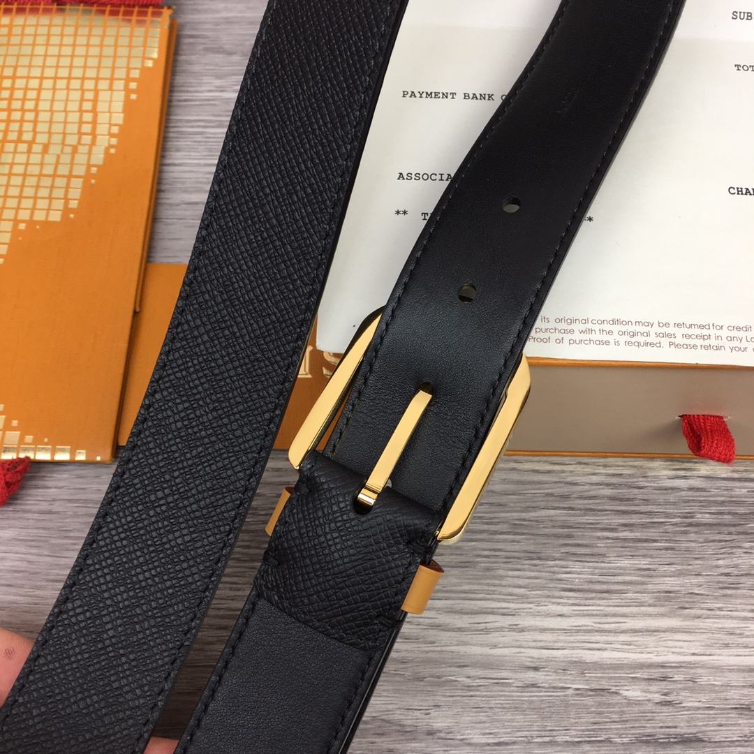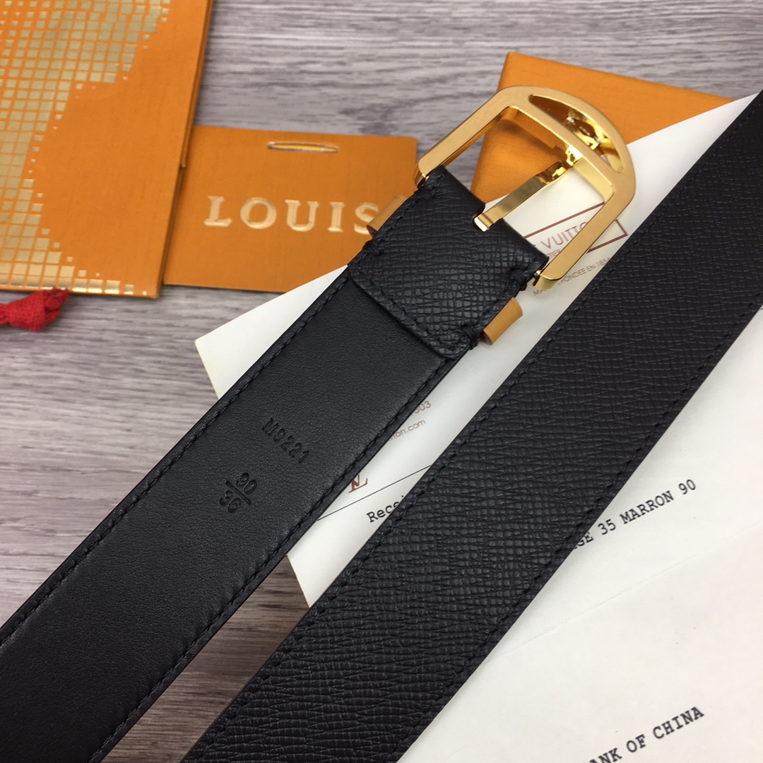 Louis Vuitton Men’s Timeless Germain Belt In Black Calfskin With Gold/Silver/Gun Black Hardware 35mm