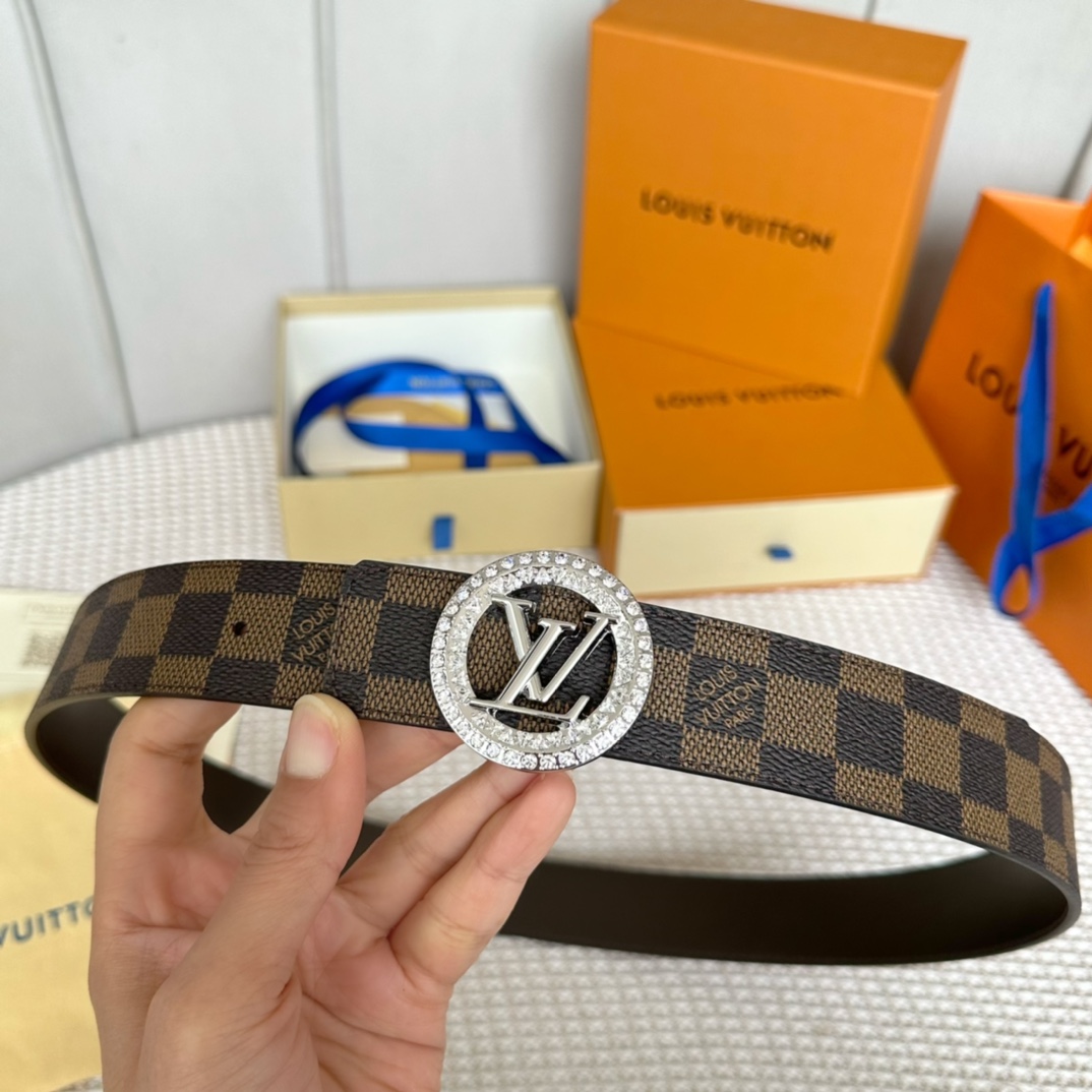 Louis Vuitton Women’s Diamonds Nautical Buckle Reversible Belt In Black/Brown Calfskin And Damier Canvas With Gold/Silver Hardware 35mm