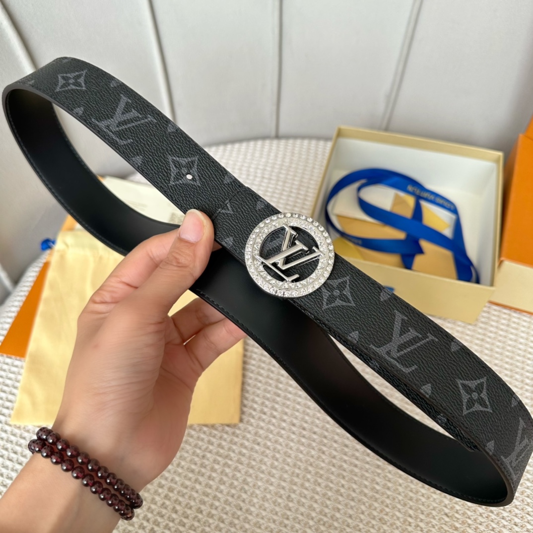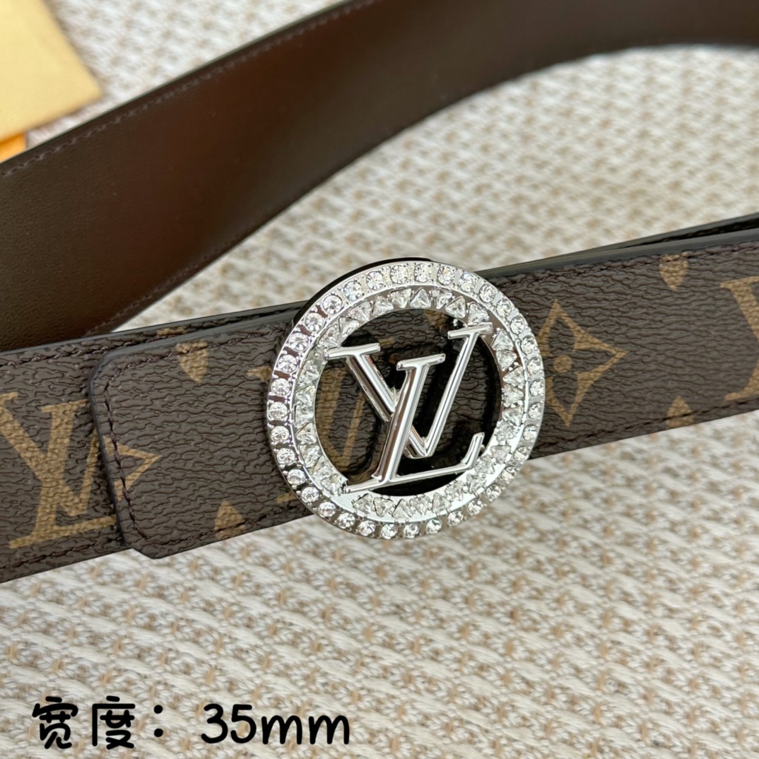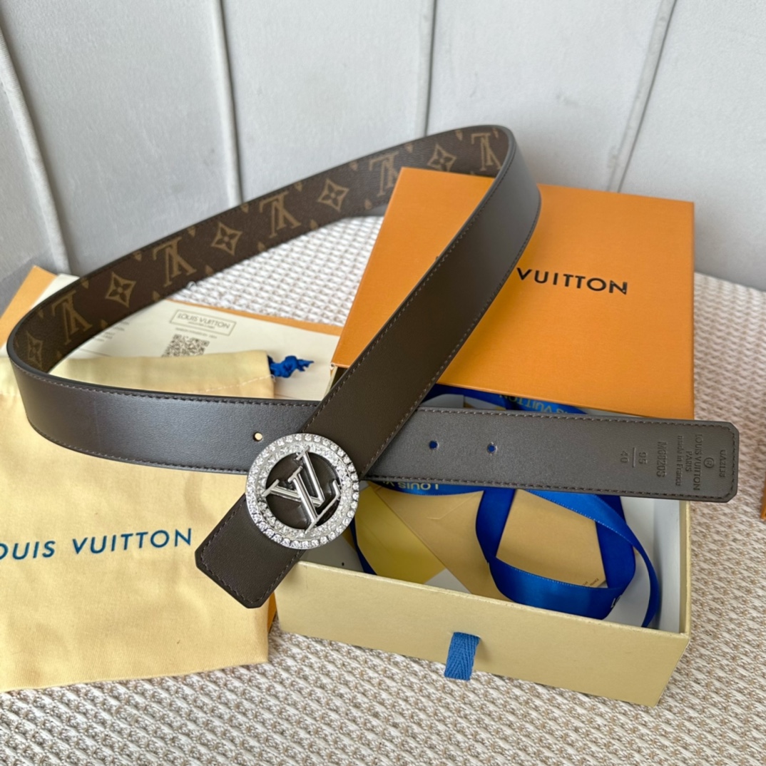 • Louis Vuitton Women’s Diamonds Nautical Buckle Reversible Belt In Black/Brown Calfskin And Monogram Canvas With Gold/Silver Hardware 35mm