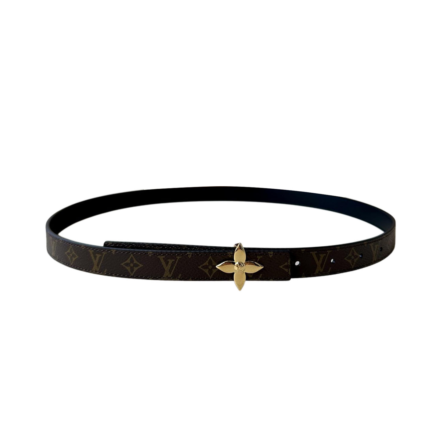 Louis Vuitton Women’s Flowergram Reversible Belt In Brown/Cookie Monogram Reverse Canvas And White/Black/Red/Pink/Brown Calfskin With Gold/Silver Hardware 20mm