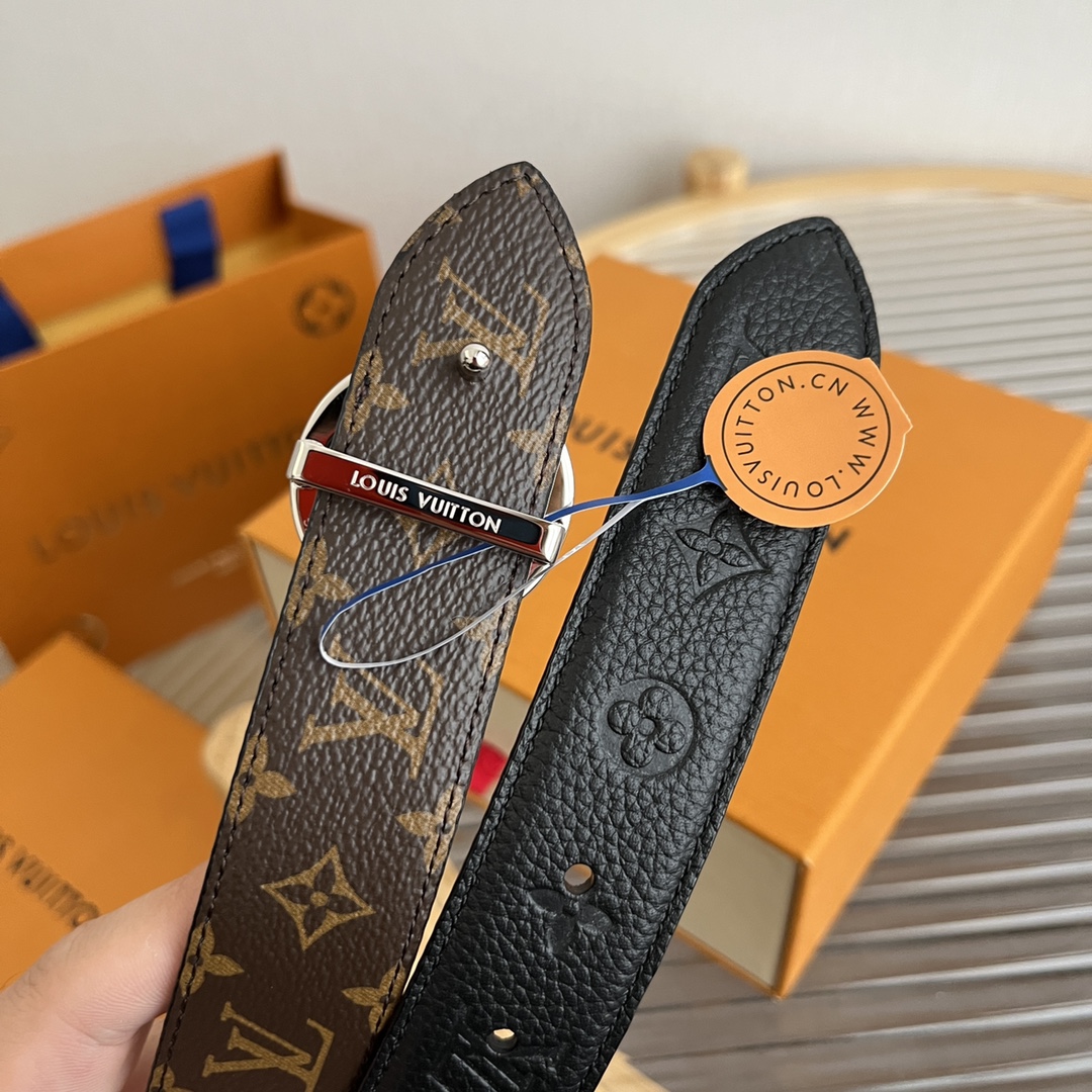 Louis Vuitton Women’s Flowergram Round Buckle Reversible Belt In Black/White/Brown Calfskin And Monogram Canvas With Gold/Silver Hardware 30mm