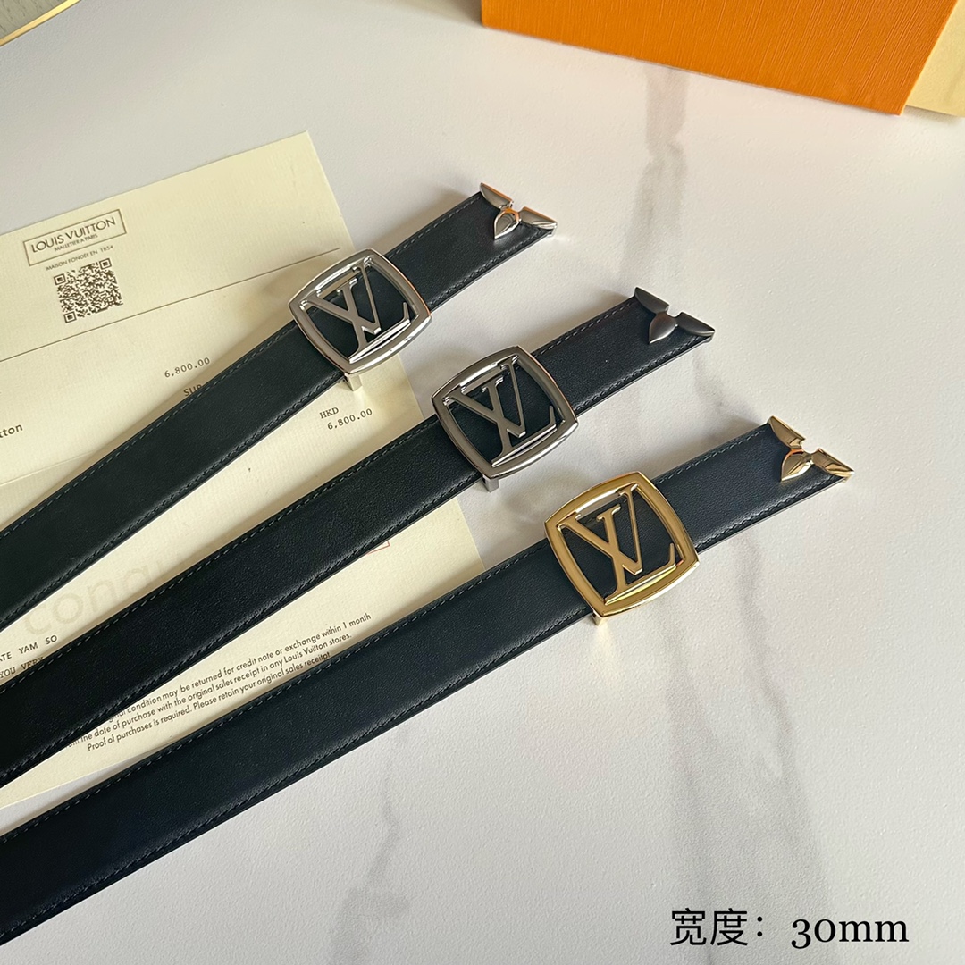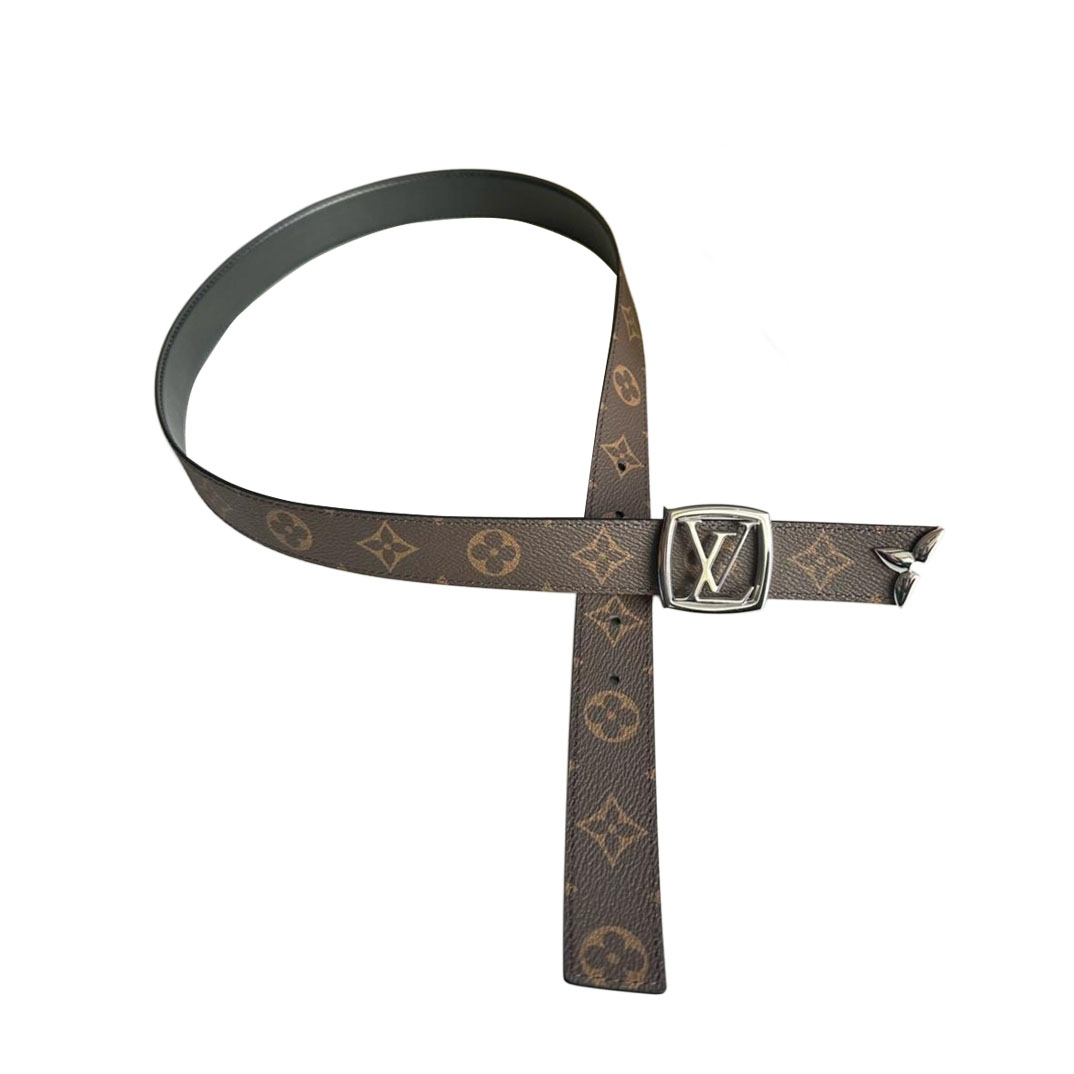 • Louis Vuitton Women’s Line Ellipse Reversible Belt In Black/Pink/White Calfskin And Monogram Canvas With Gold/Silver/Gun Black Hardware 30mm