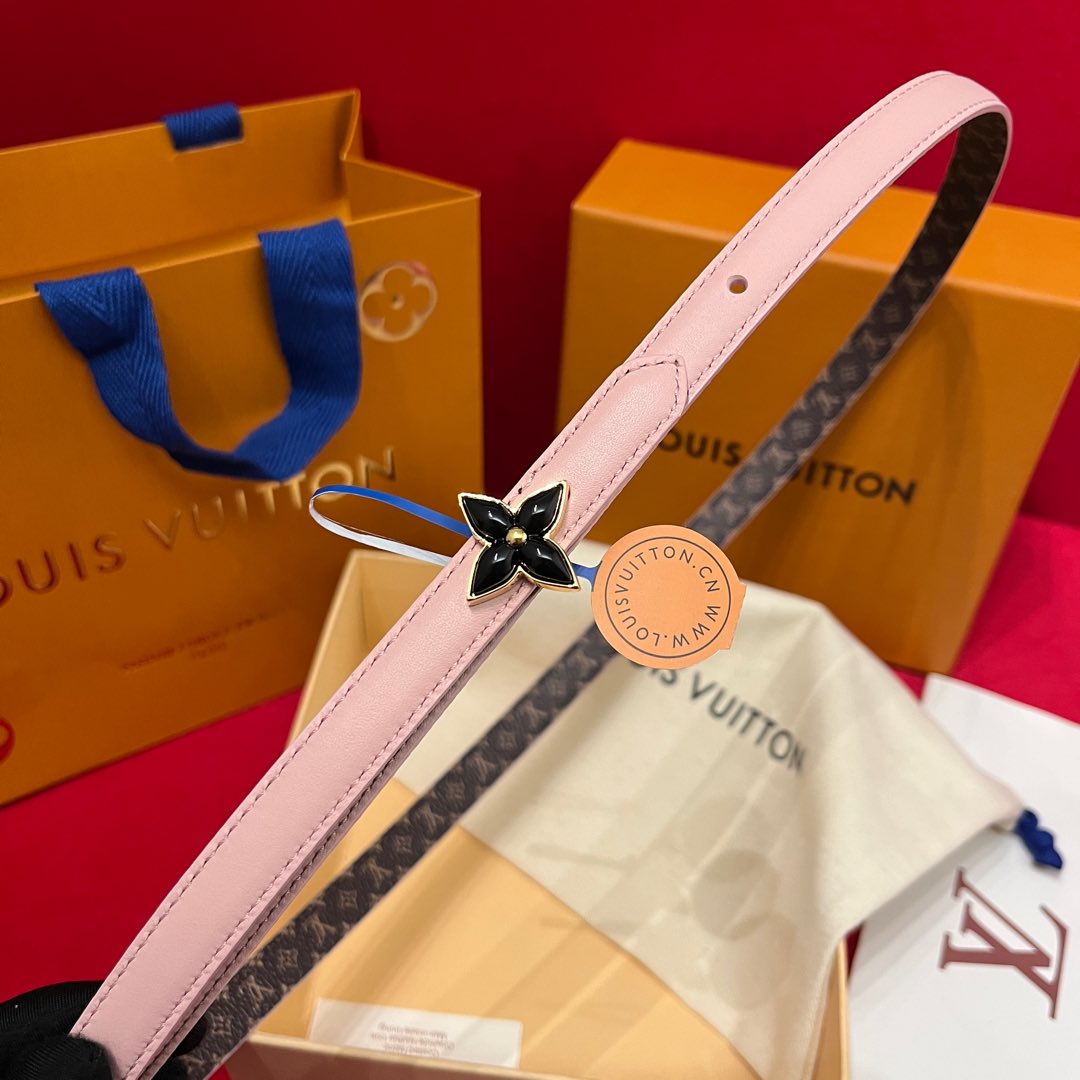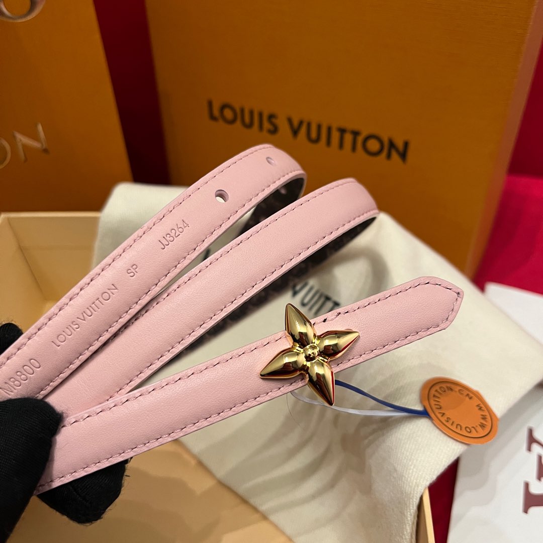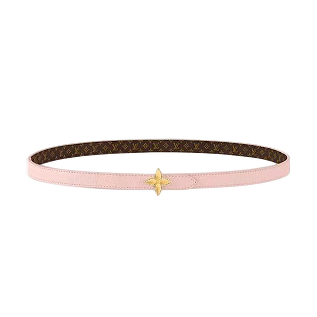 Louis Vuitton Women’s Mini Flowergram Reversible Belt In Pink Calfskin And Monogram Canvas With Gold/Silver/Pink/Black Hardware 15mm