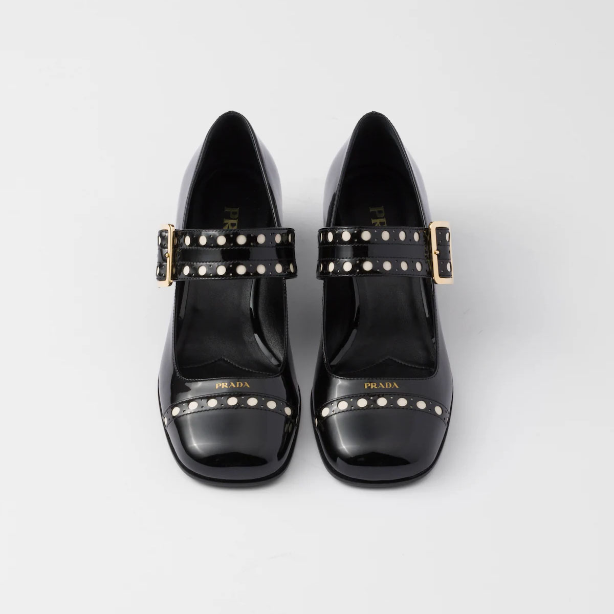 PRADA Patent paint leather Black High Heels Shoes Mary Jane Shoes