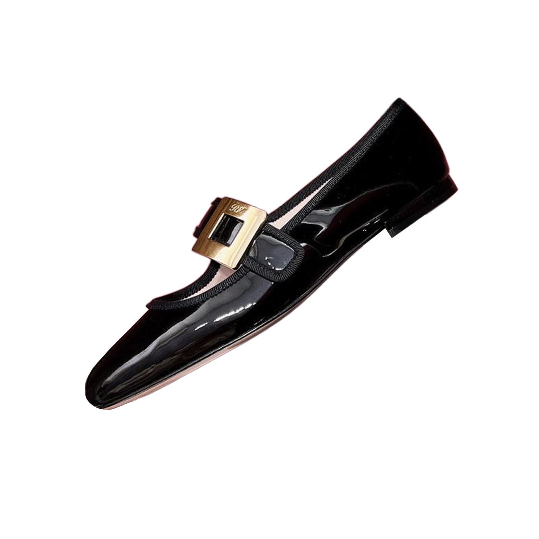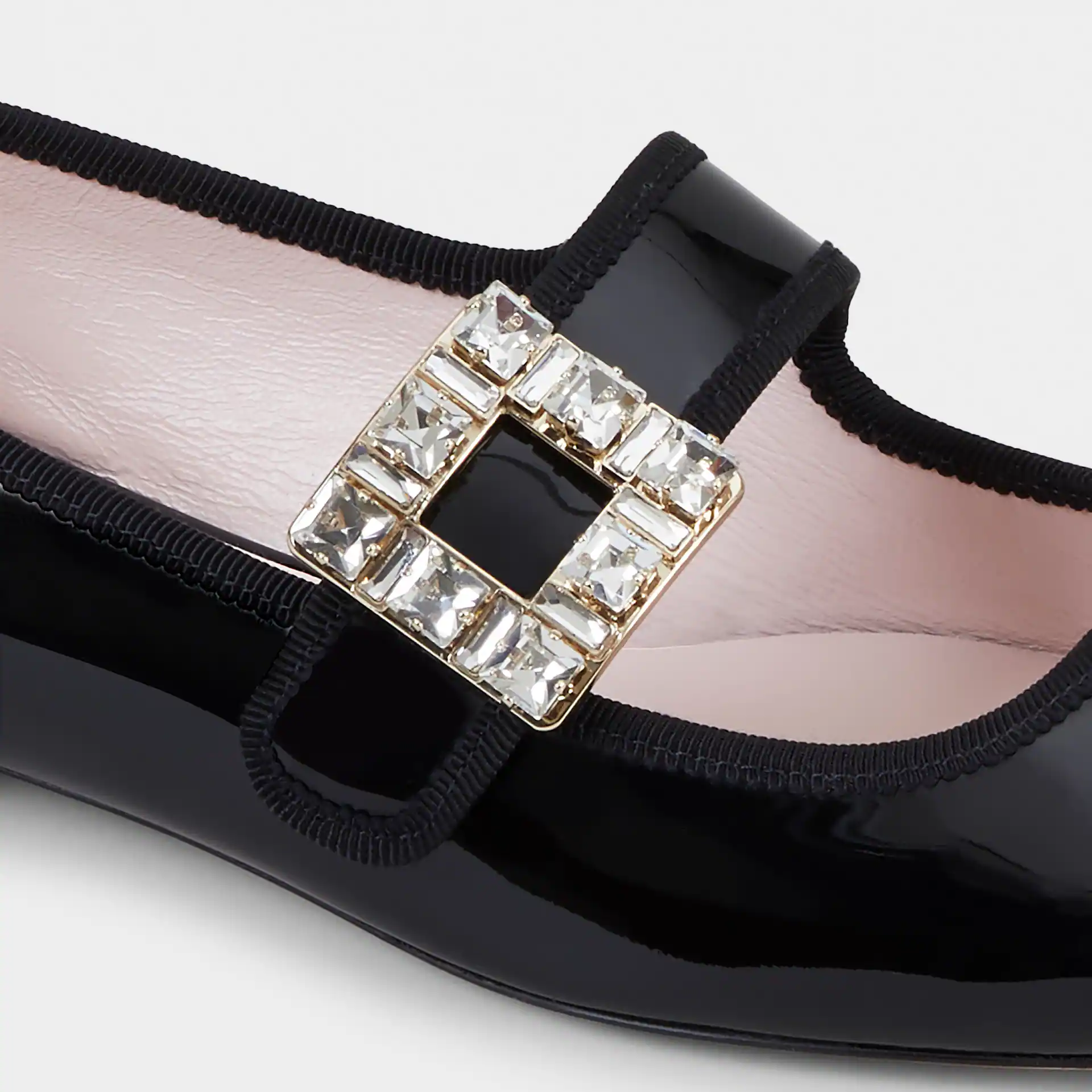 Roger Vivier Tr猫s Vivier Dasiy Mary Janes In Black Patent Leather With Flower Metal Buckle (Heel Height 2.5cm)
