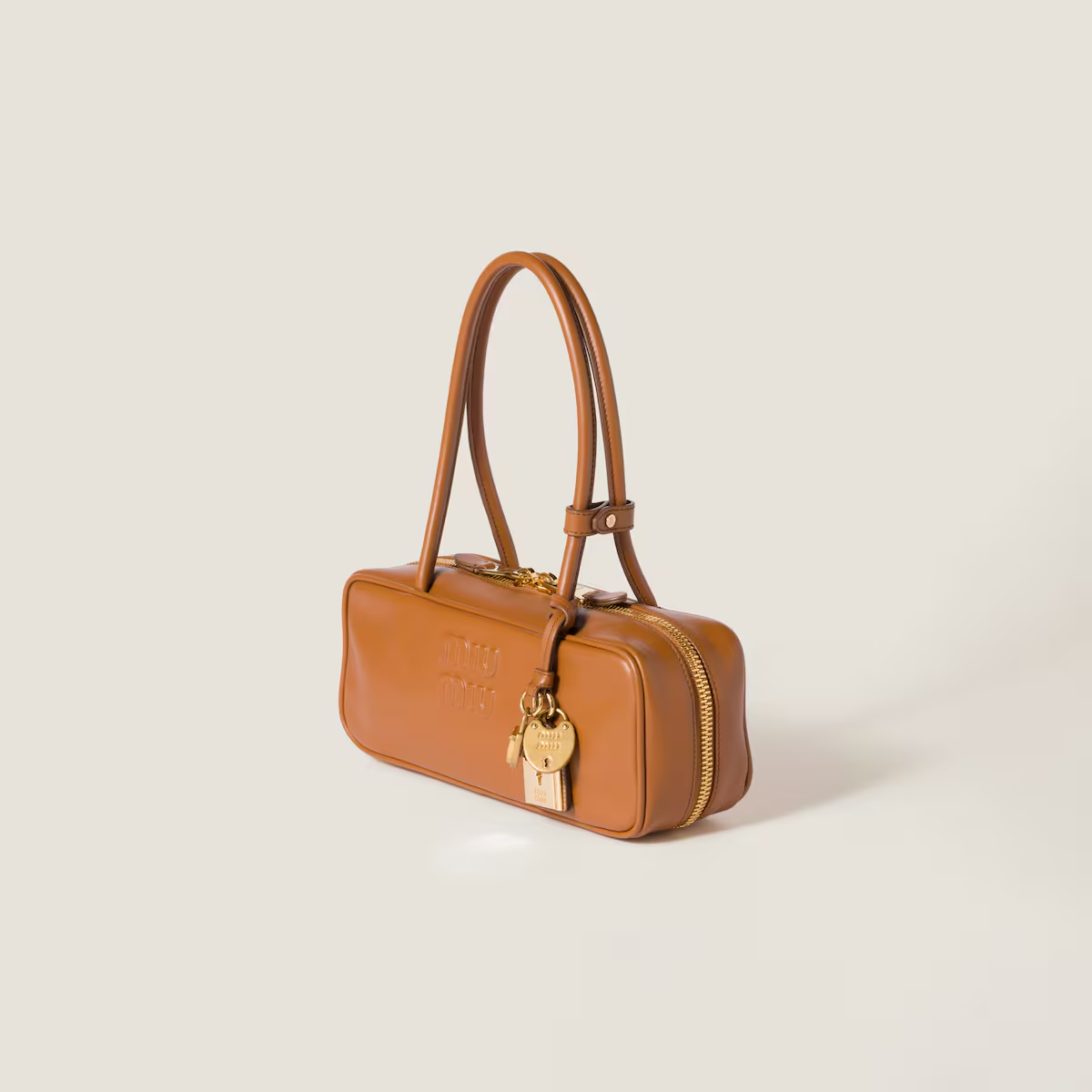 Miu Miu Calfskin Leather Beau Brown Top-Handle Bags