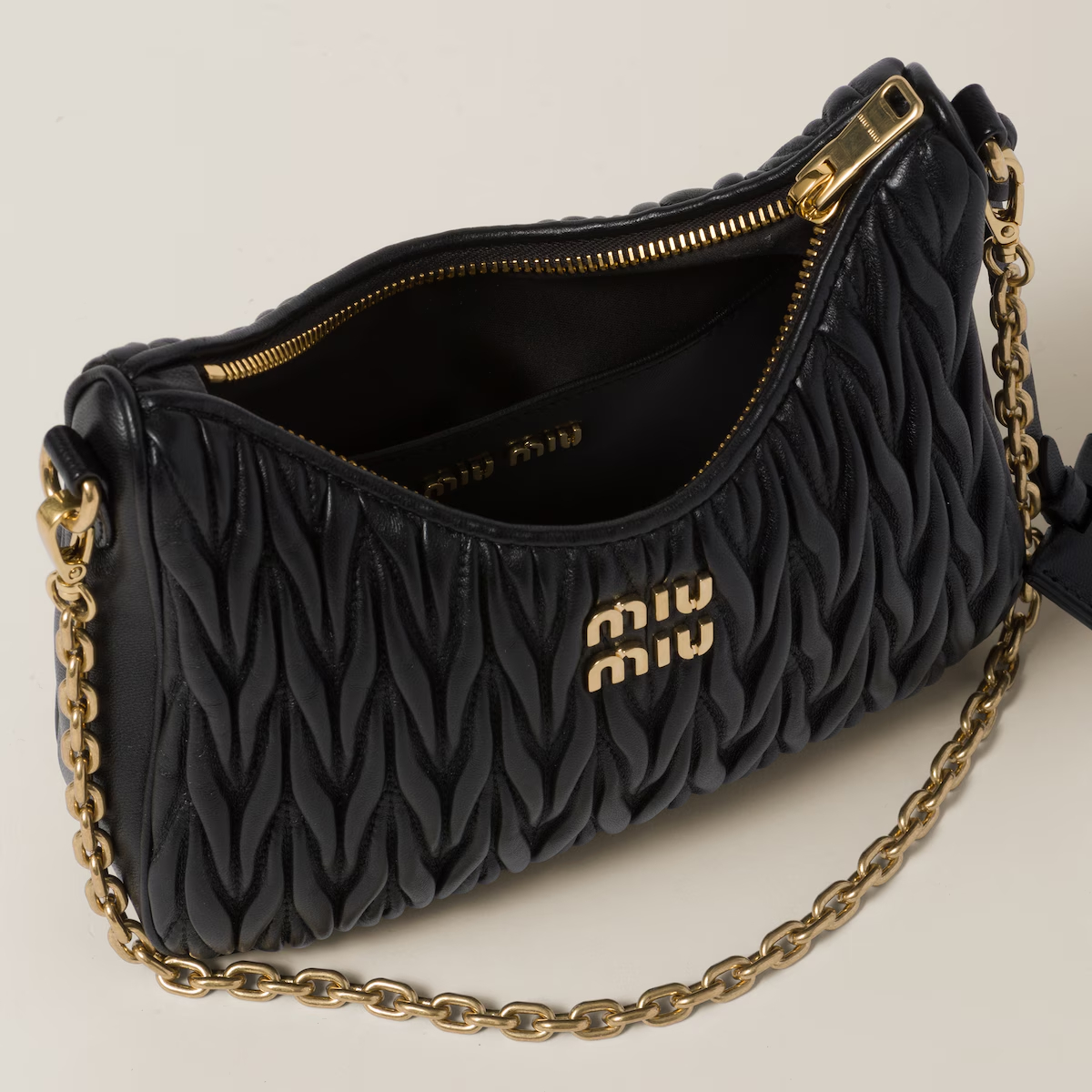 - Miu Miu Matelassé Quilted Lambskin Leather Black Crossbody Bags