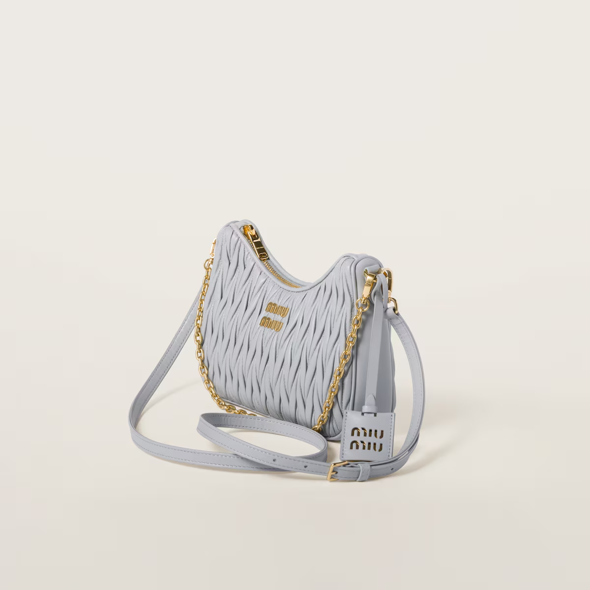 - Miu Miu Matelassé Quilted Lambskin Leather Blue Shoulder Bags