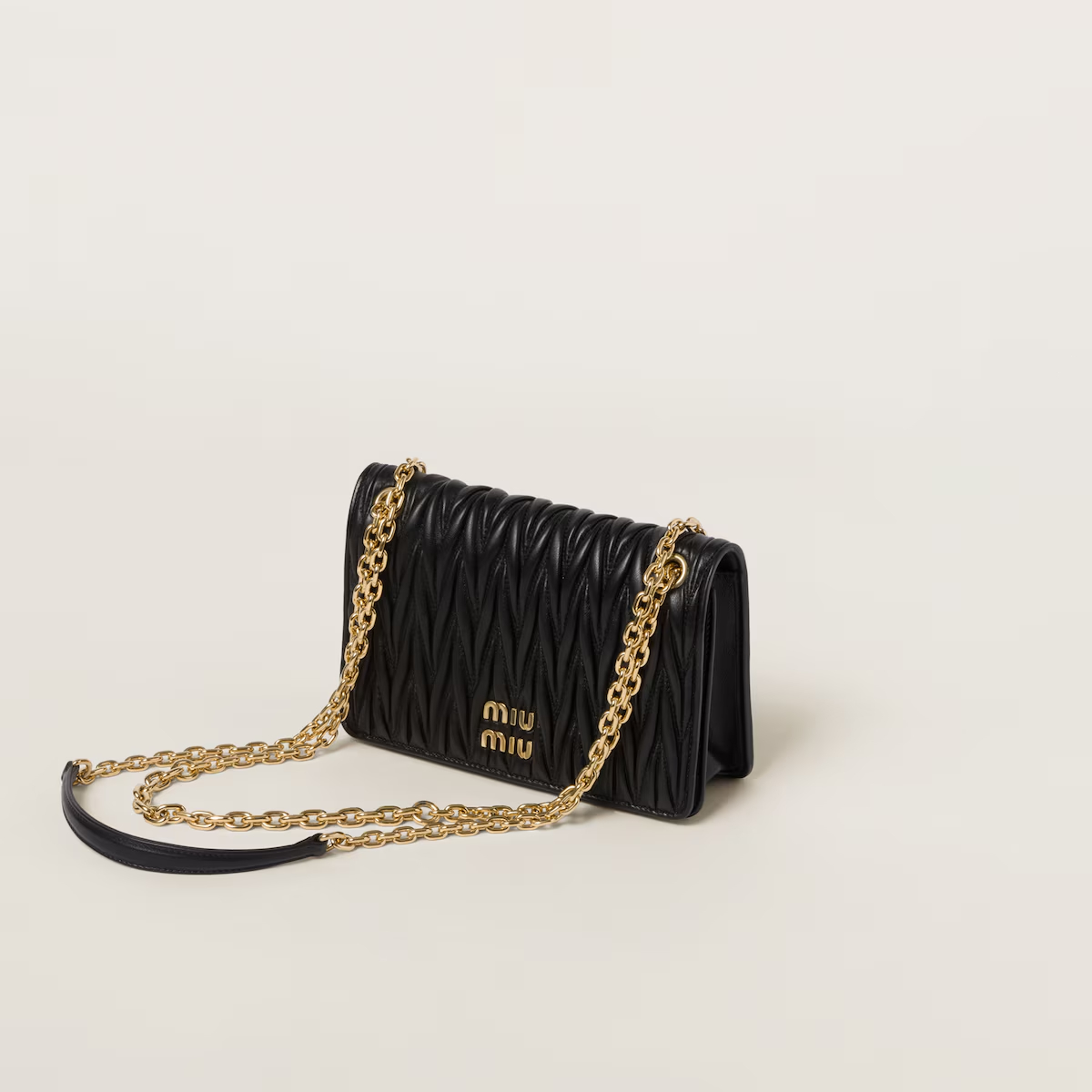 - Miu Miu Quilted Lambskin Leather Black Crossbody Bags