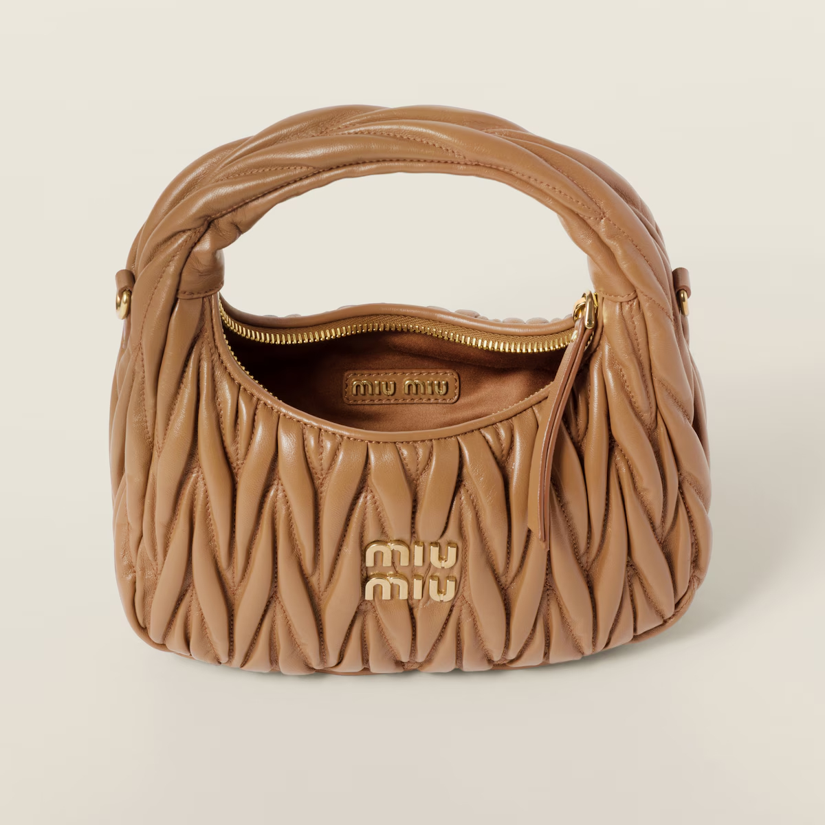 - Miu Miu Wander Matelassé Quilted Lambskin Leather handbag Light Brown Crossbody Bags