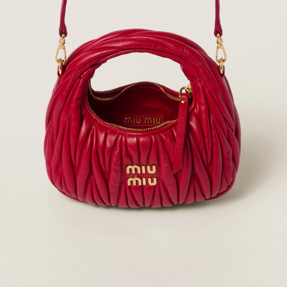 - Miu Miu Wander Matelassé Quilted Lambskin Leather handbag Red Crossbody Bags