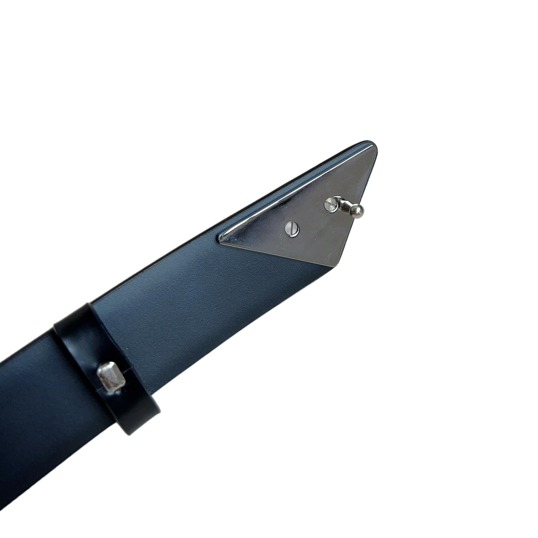Prada Men’ s Triangled Buckle Belt In Black Smooth Calfskin With Silver Hardware 33mm