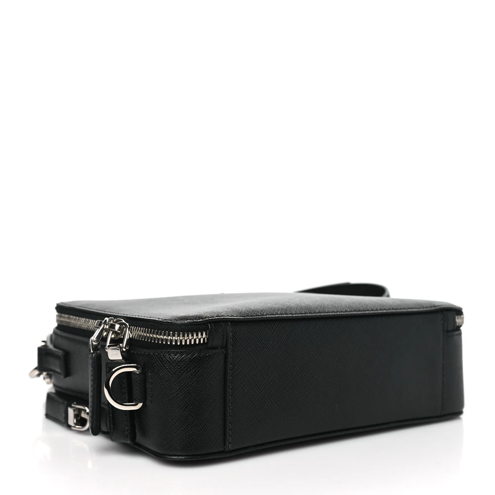 Prada Medium Travel Brique Crossbody Bag Black Saffiano Leather Silver Hardware