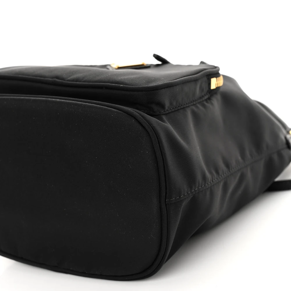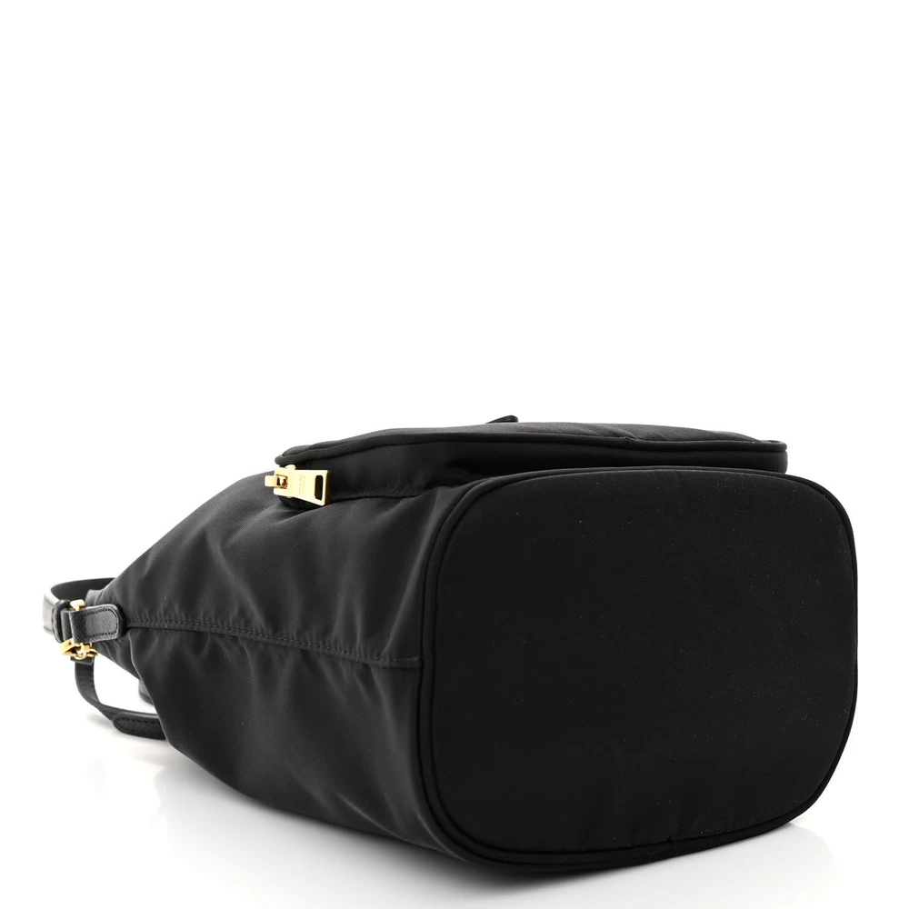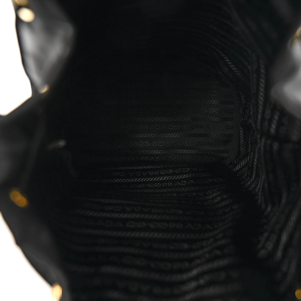 Prada Mini Bucket Crossbody Bag Black Saffiano Leather & Tessuto Nylon Brass Hardware
