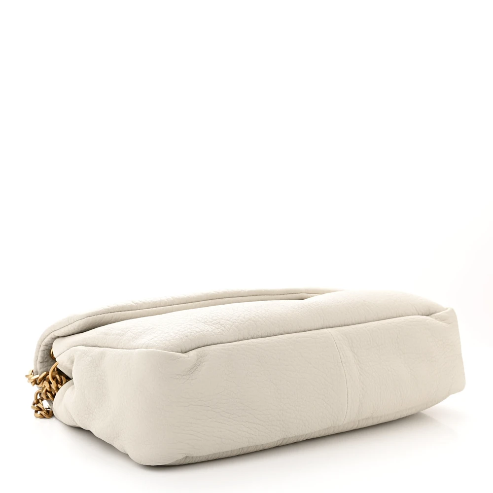 Saint Laurent Large Calypso Bag Blanc Vintage Grained Lambskin Leather Aged Gold Hardware