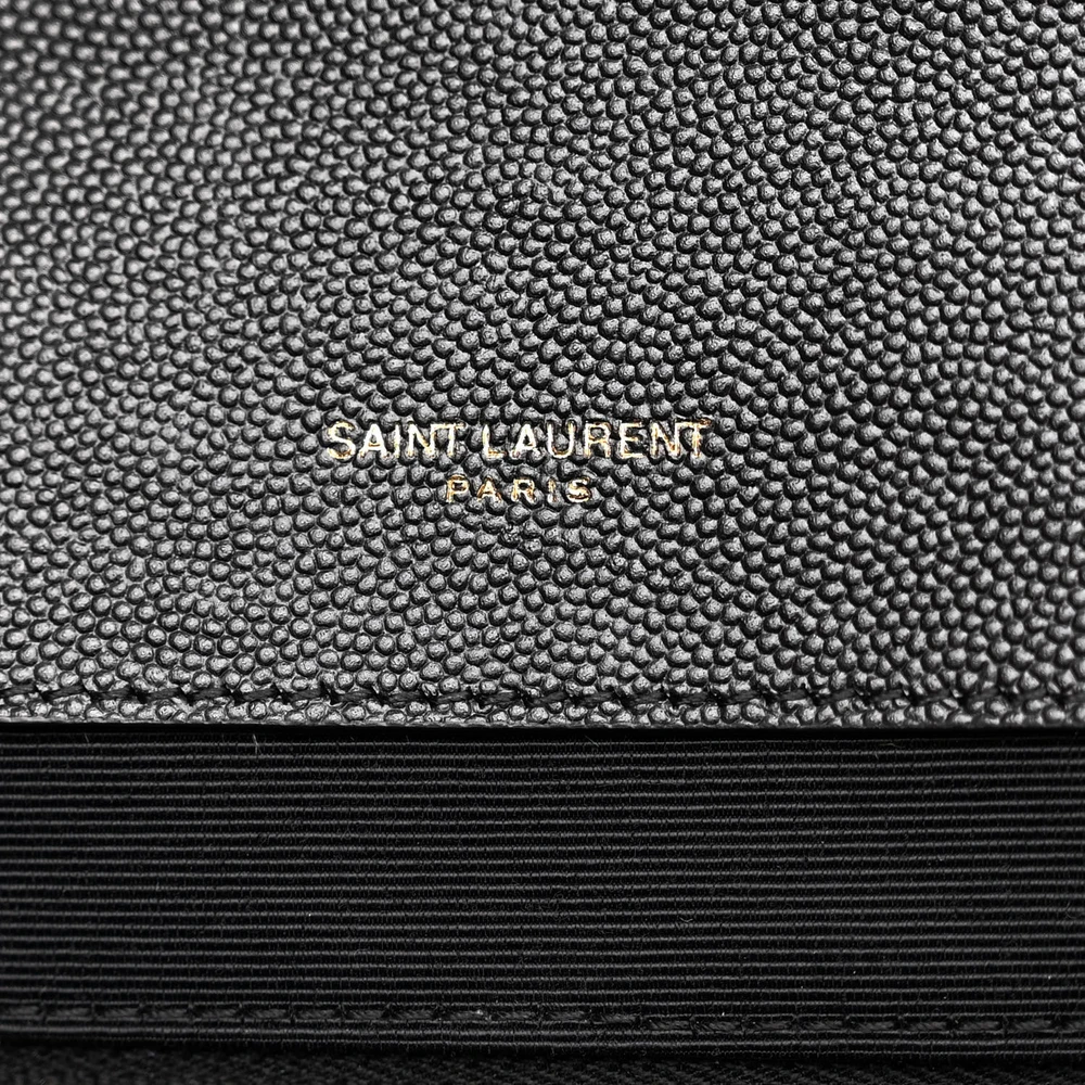 This Saint Laurent Large Satchel in Black showcases Triquilt Monogram Grain De Poudre Leather with mixed matelasse textures. Gold hardware enhances its luxurious appeal, while the spacious interior offers practicality. A sophisticated choice for those who appreciate bold yet timeless design. Perfect for elevating everyday outfits with elegance.
