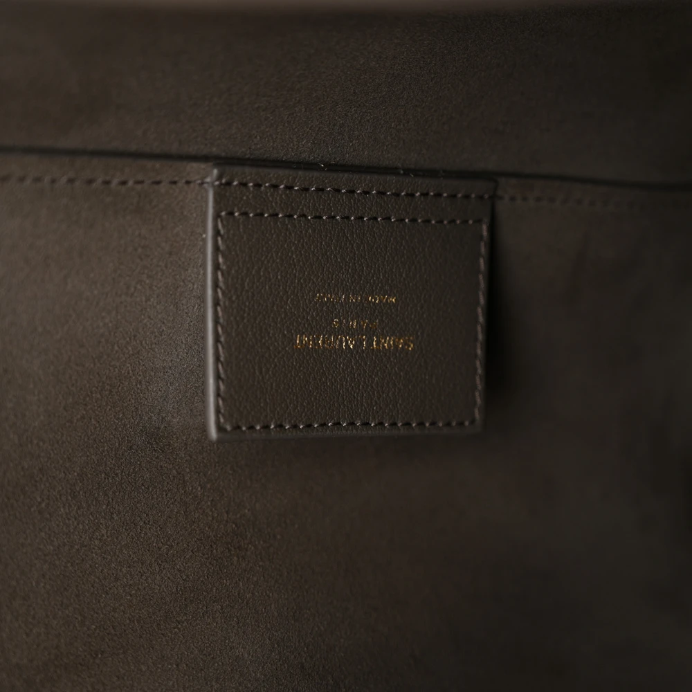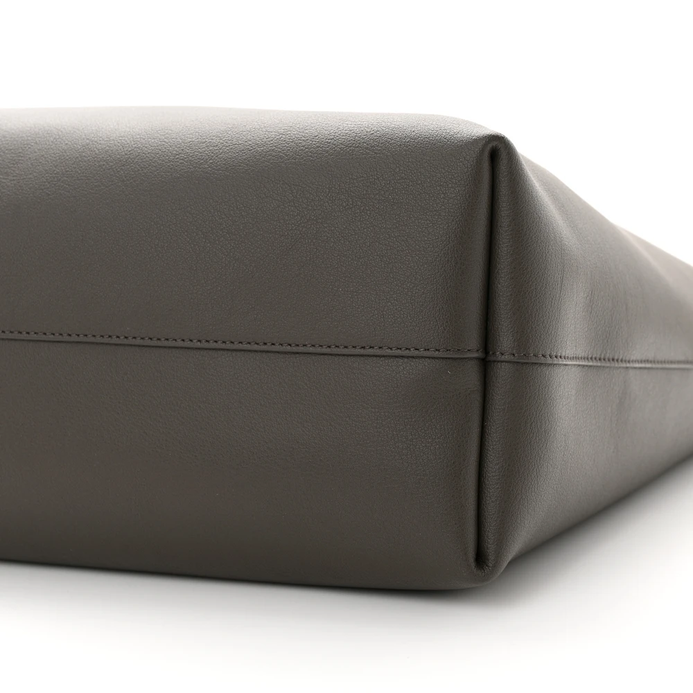 This Large Shopping Tote in Grey showcases Calfskin Leather for a sophisticated look. Its spacious interior provides ample room for everyday essentials. Comfortable handles and a minimalist design make it perfect for work, shopping, or travel.