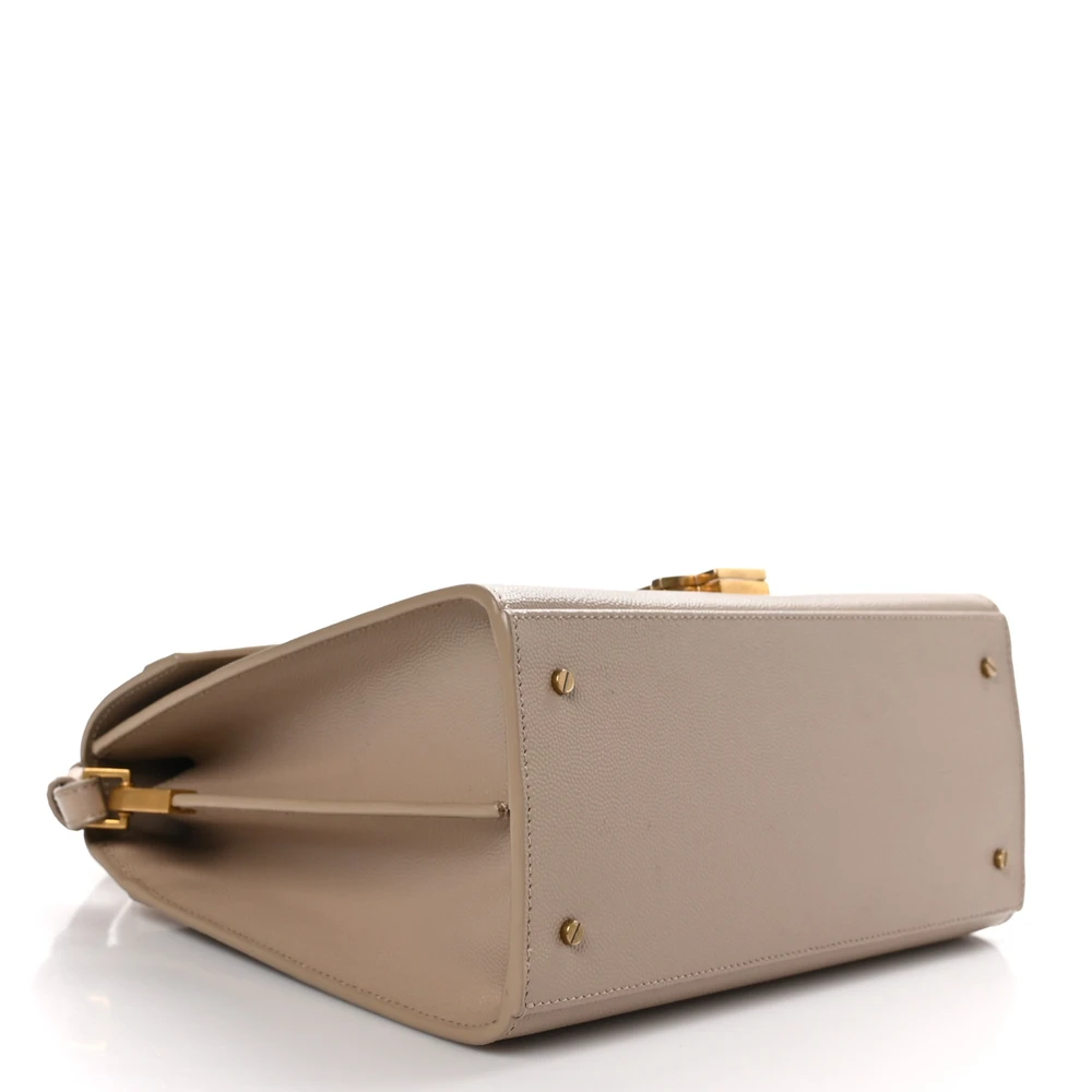 • Saint Laurent Medium Cassandra Top Handle Dark Beige Classic Monogram Grain De Poudre Leather Aged Gold Hardware