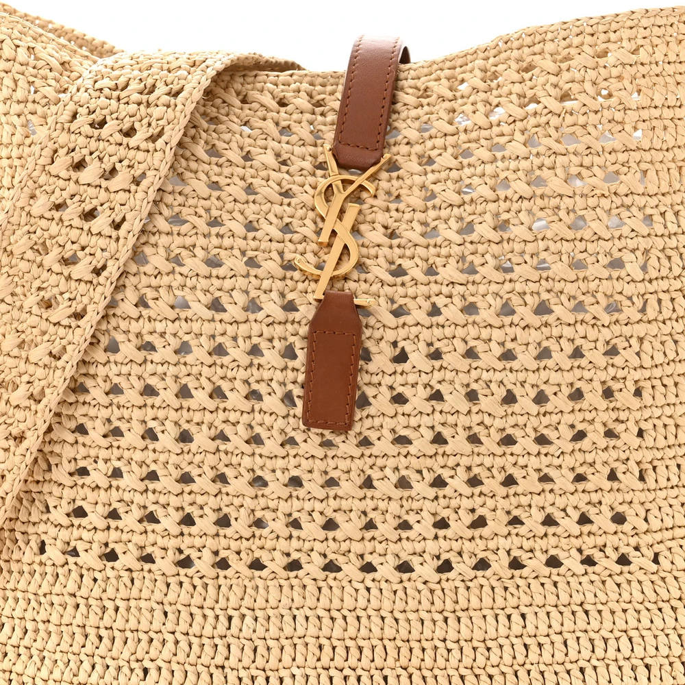 Saint Laurent Medium Hobo Naturale Monogram Raffia Aged Gold Hardware