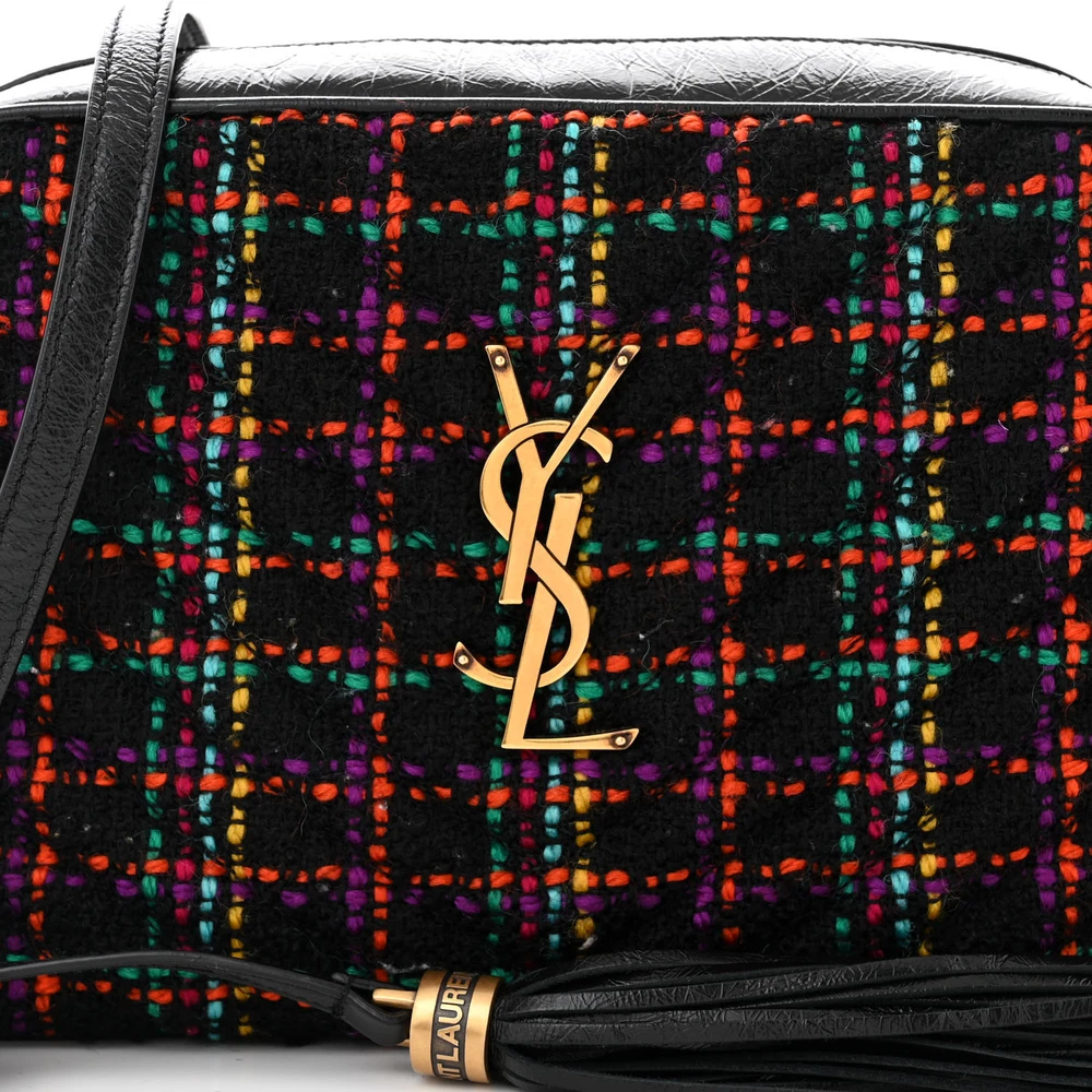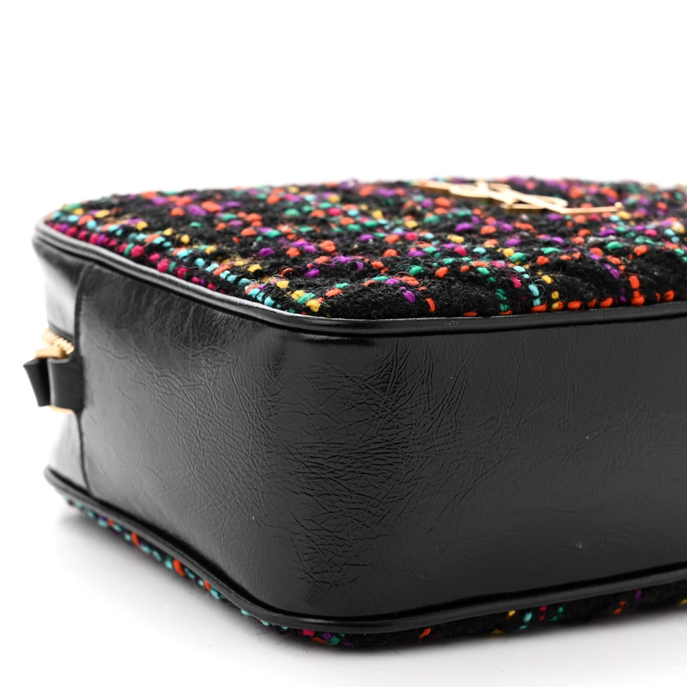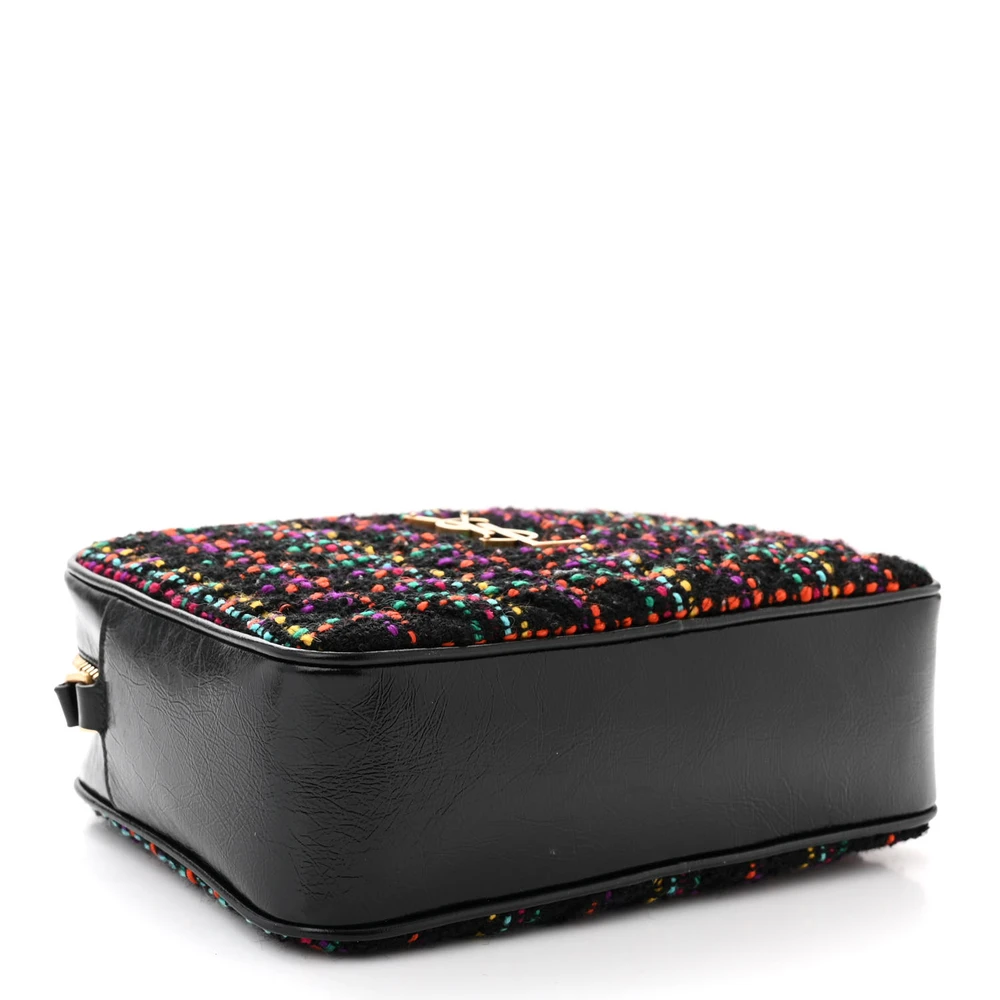 Saint Laurent Medium Lou Camera Bag Black Monogram Tweed & Calfskin Leather Brass Hardware