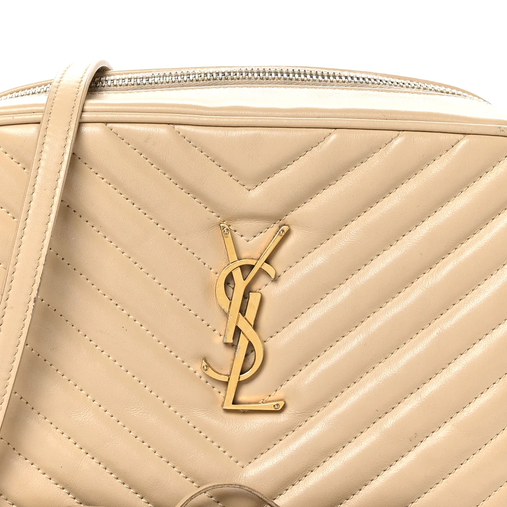 Saint Laurent Medium Lou Camera Bag Dark Beige Monogram Calfskin Matelasse Leather Aged Gold Hardware