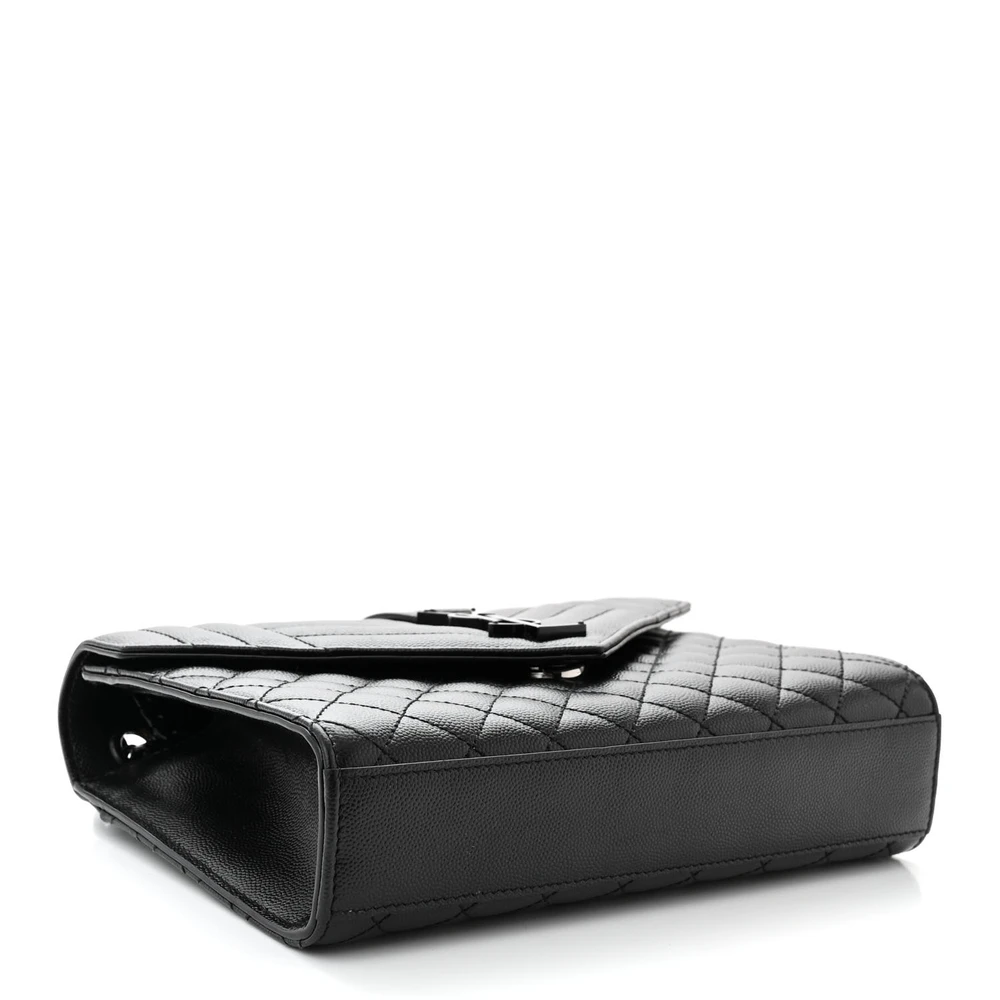 Saint Laurent Medium Satchel Black Triquilt Monochrome Monogram Grain De Poudre Textured Mixed Matelasse Leather Black Hardware