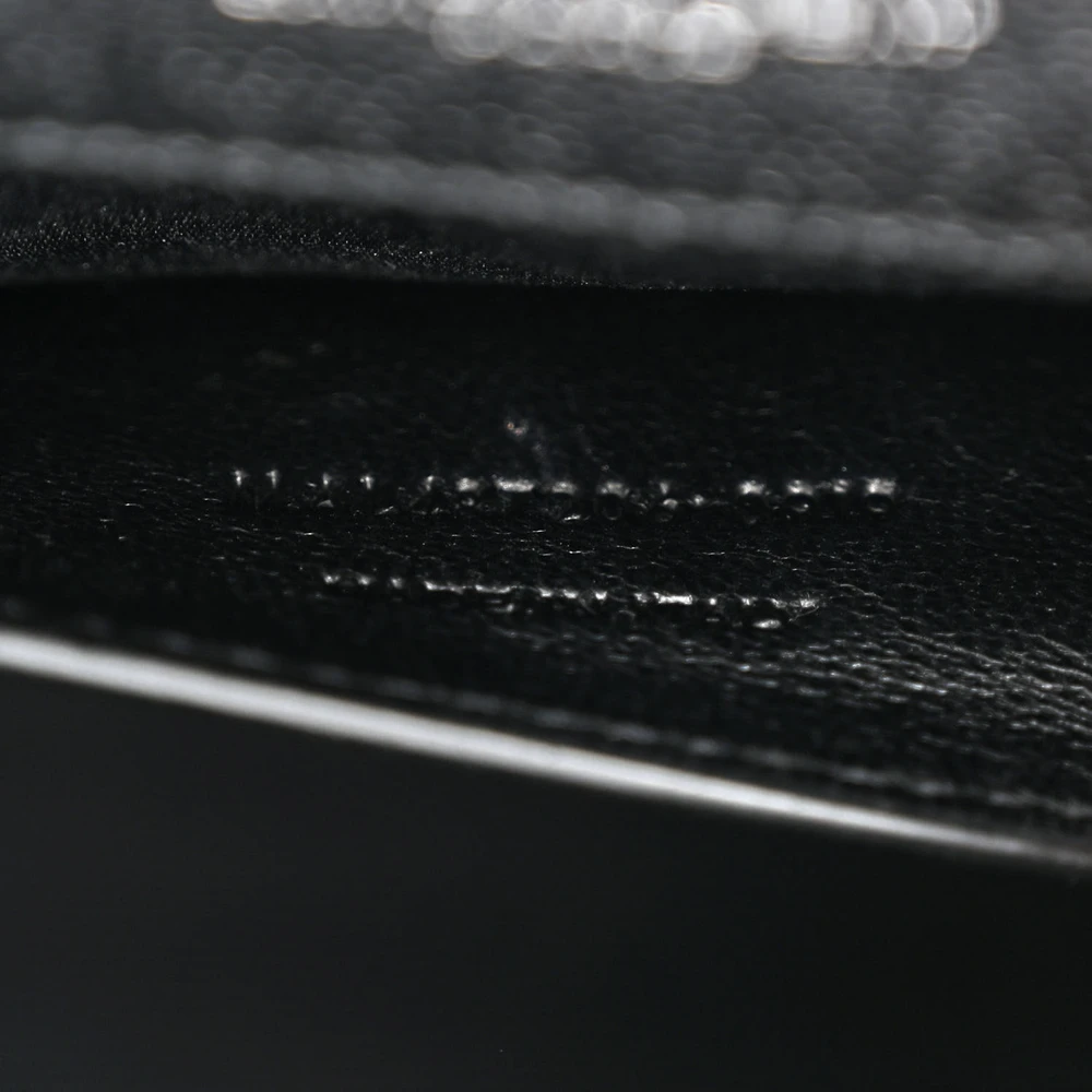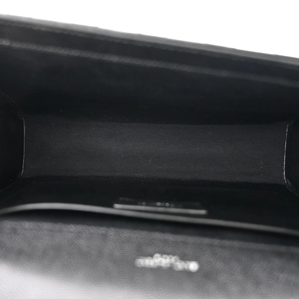 This Medium Satchel in Black features Triquilt Monogram Grain De Poudre Textured Mixed Matelasse Leather with silver hardware. The intricate quilting pattern creates a luxurious texture, complemented by the iconic YSL logo. Spacious and versatile, the bag includes a top handle and a detachable strap for multiple carrying options. Its elegant design is perfect for both professional and social settings.
