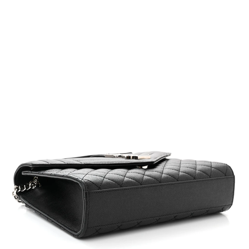 Saint Laurent Medium Satchel Black Triquilt Monogram Grain De Poudre Textured Mixed Matelasse Leather Silver Hardware