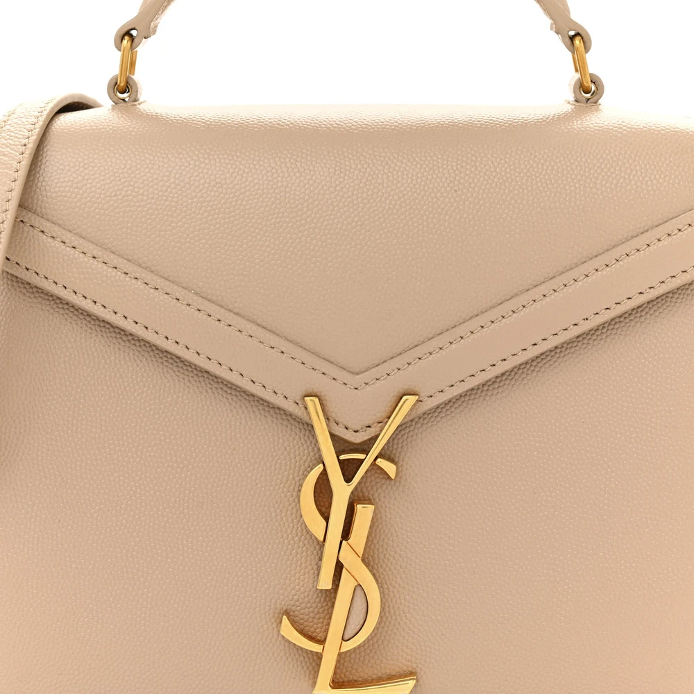 • Saint Laurent Mini Cassandra Top Handle Crema Soft Classic Monogram Grain De Poudre Leather Aged Gold Hardware