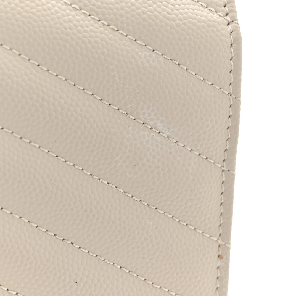• Saint Laurent Small Chain Wallet Crema Soft Chevron Monogram Grain De Poudre Matelasse Leather Gold Hardware