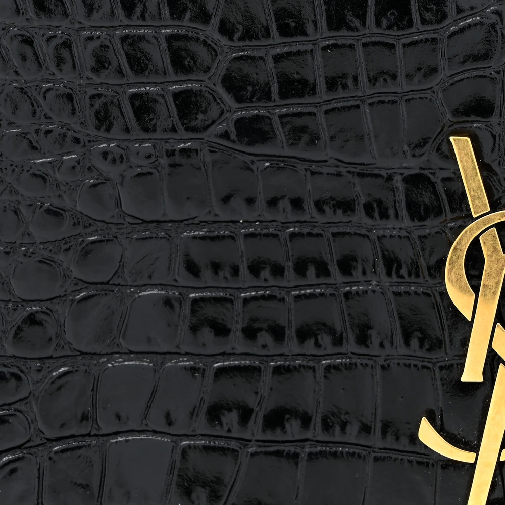 Saint Laurent Small Lou Belt Bag Black Embossed Monogram Patent Calfskin & Crocodile Leather Aged Gold Hardware