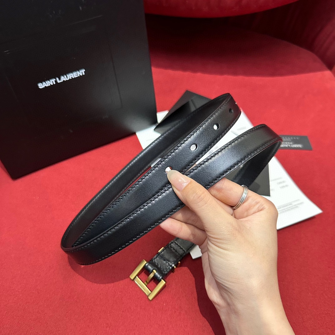 Saint Laurent Cassandre Belt In Black/White/Beige/Pink/Brown Smooth Calfskin With Gold Hardware 20mm