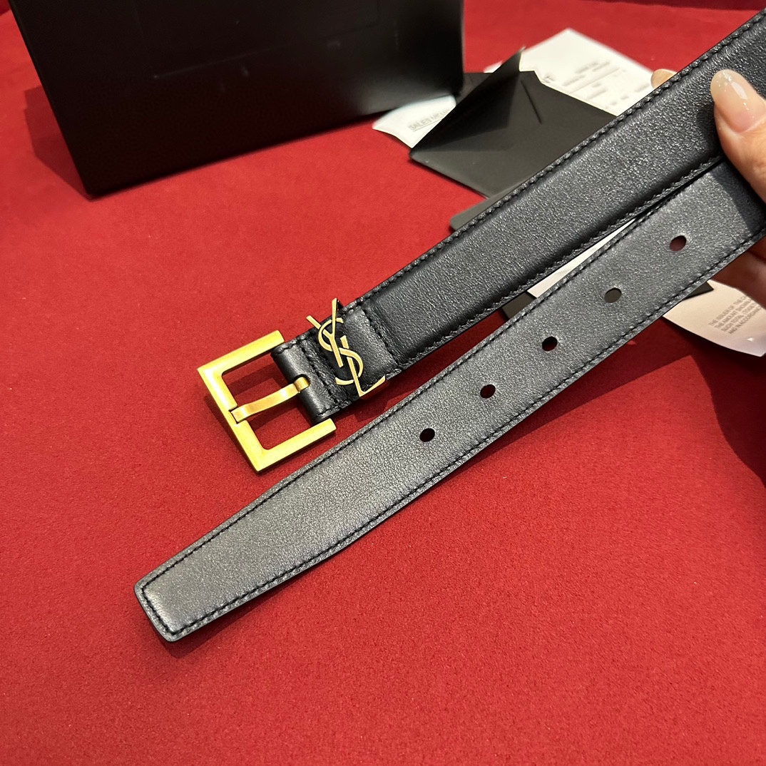 Saint Laurent Cassandre Belt In Black/White/Beige/Pink/Brown Smooth Calfskin With Gold Hardware 30mm