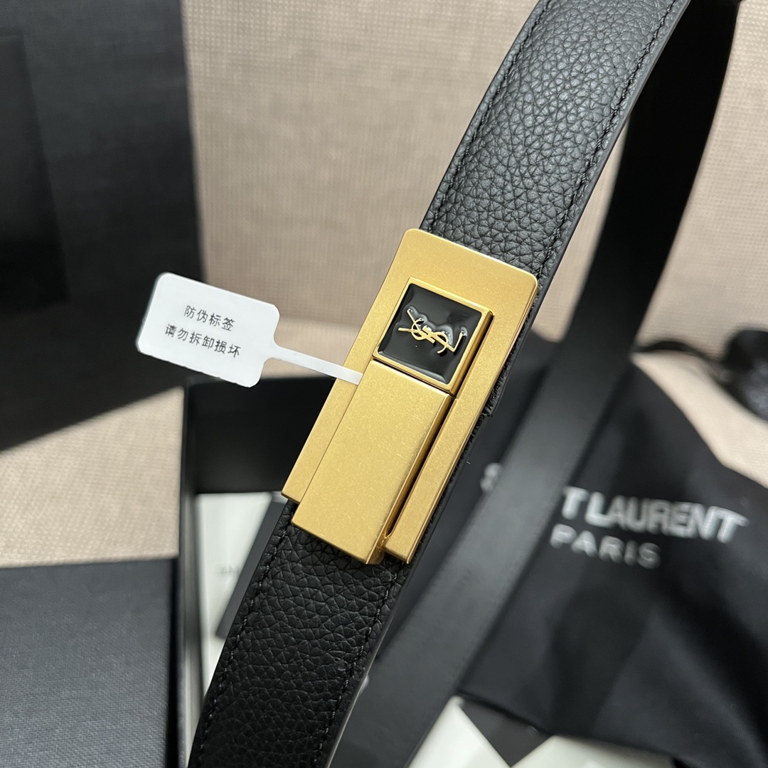 Saint Laurent Charniere Buckle Belt In Black/Burgundy Smooth Calfskin With Gold Hardware 30mm