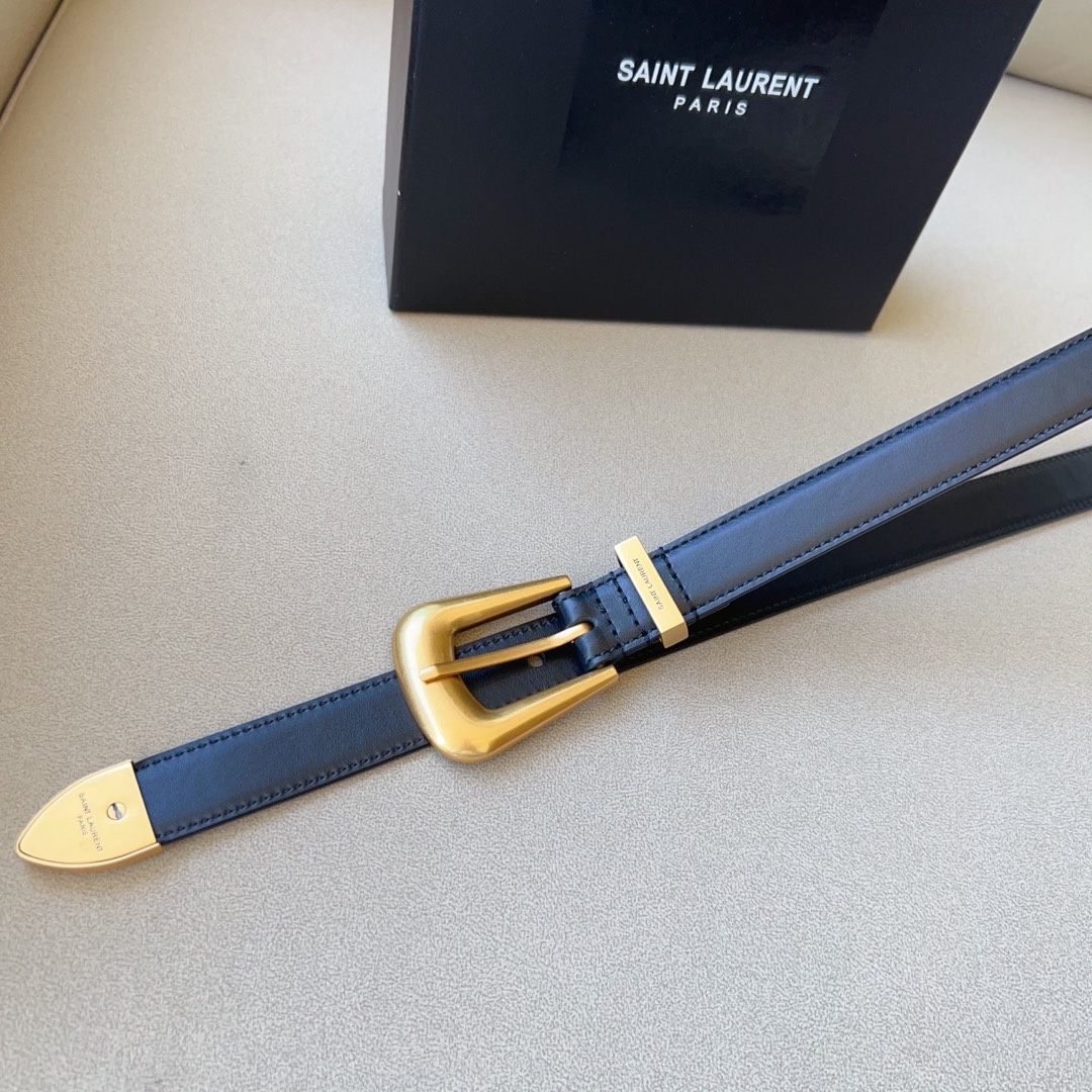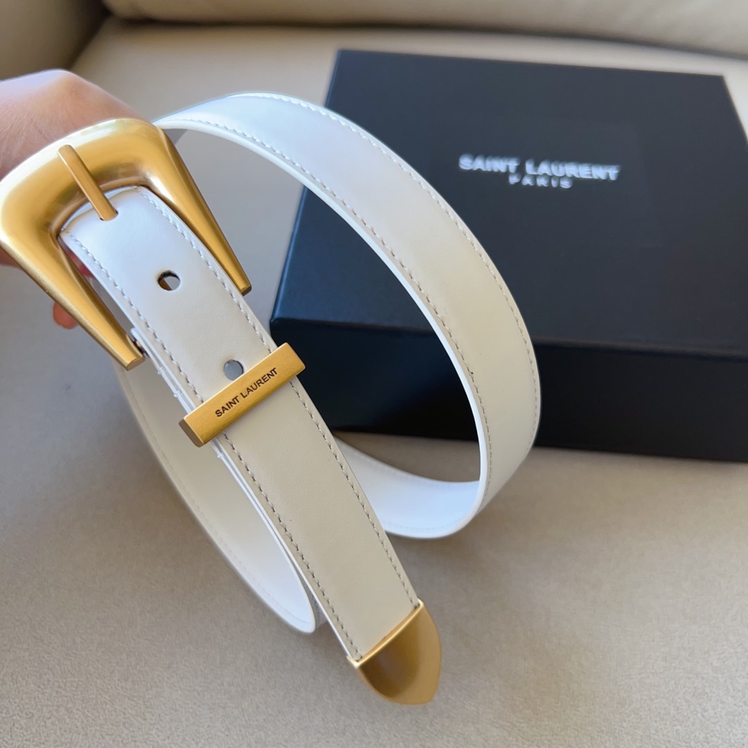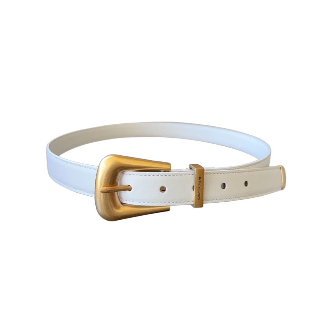Saint Laurent Folk Buckle Belt In Black/White/Brown Smooth Leather With Gold/Silver Hardware 25mm