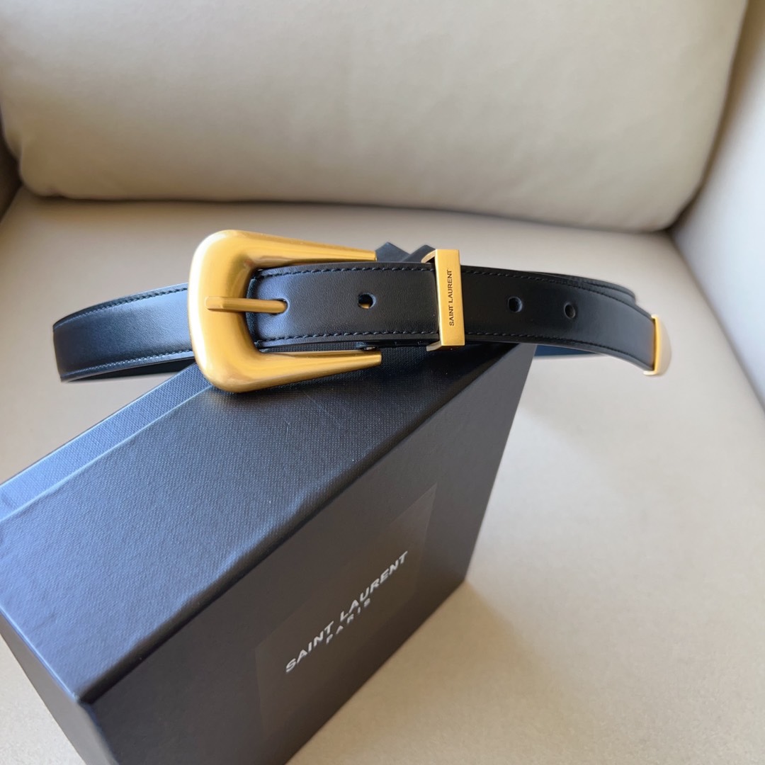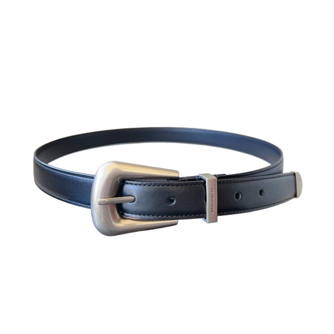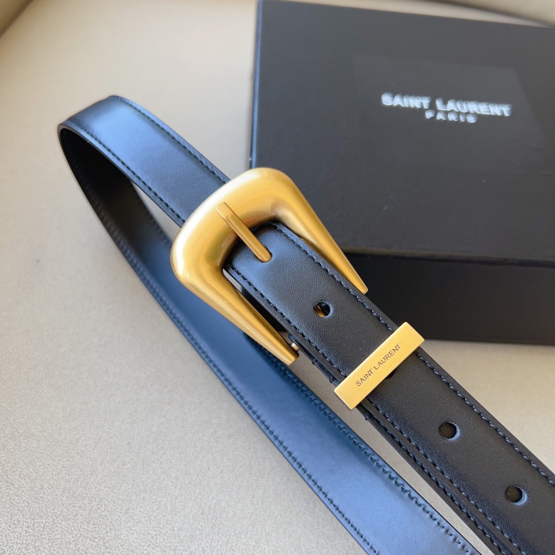 Saint Laurent Folk Buckle Belt In Black/White/Brown Smooth Leather With Gold/Silver Hardware 25mm