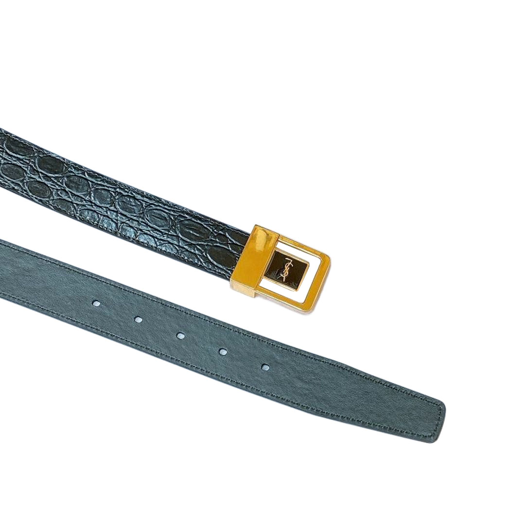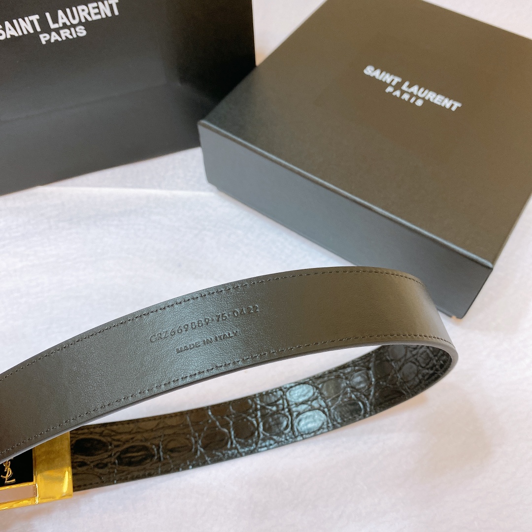 Saint Laurent LA 66 Buckle Belt In Black Calfskin With Gold Hardware 30mm