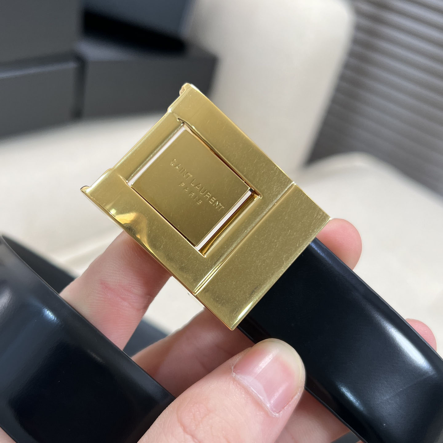 Saint Laurent LA 76 Belt In Burgundy/Black Smooth Calfskin With Gold/Silver Hardware 30mm