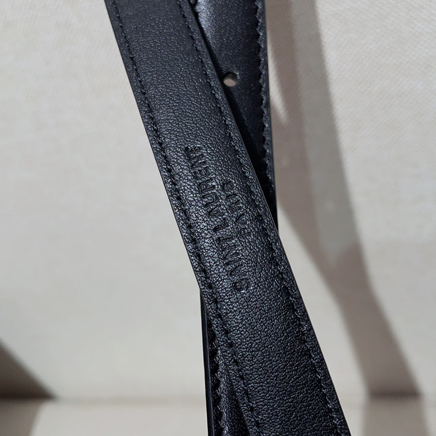 Saint Laurent Long Oval Buckle Thin Belt In Black Calfskin With Gold/Silver Hardware 15mm