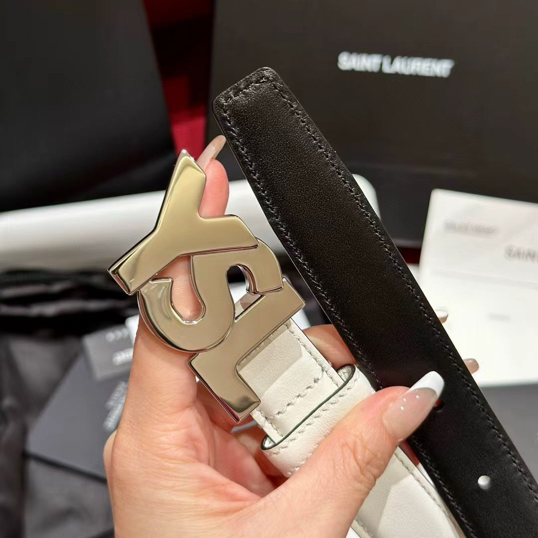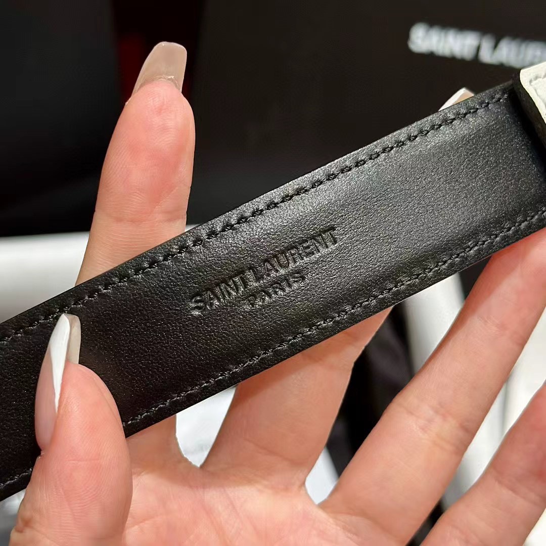 Saint Laurent YSL Buckle Belt In Black/White Calfskin With Gold/Silver Hardware 25mm