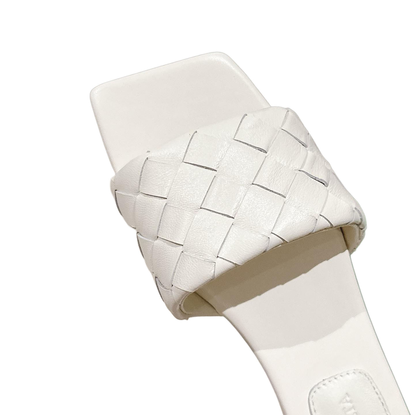 • Bottega Veneta Parco Mule In White Intrecciato Leather Flat Mule Sandal