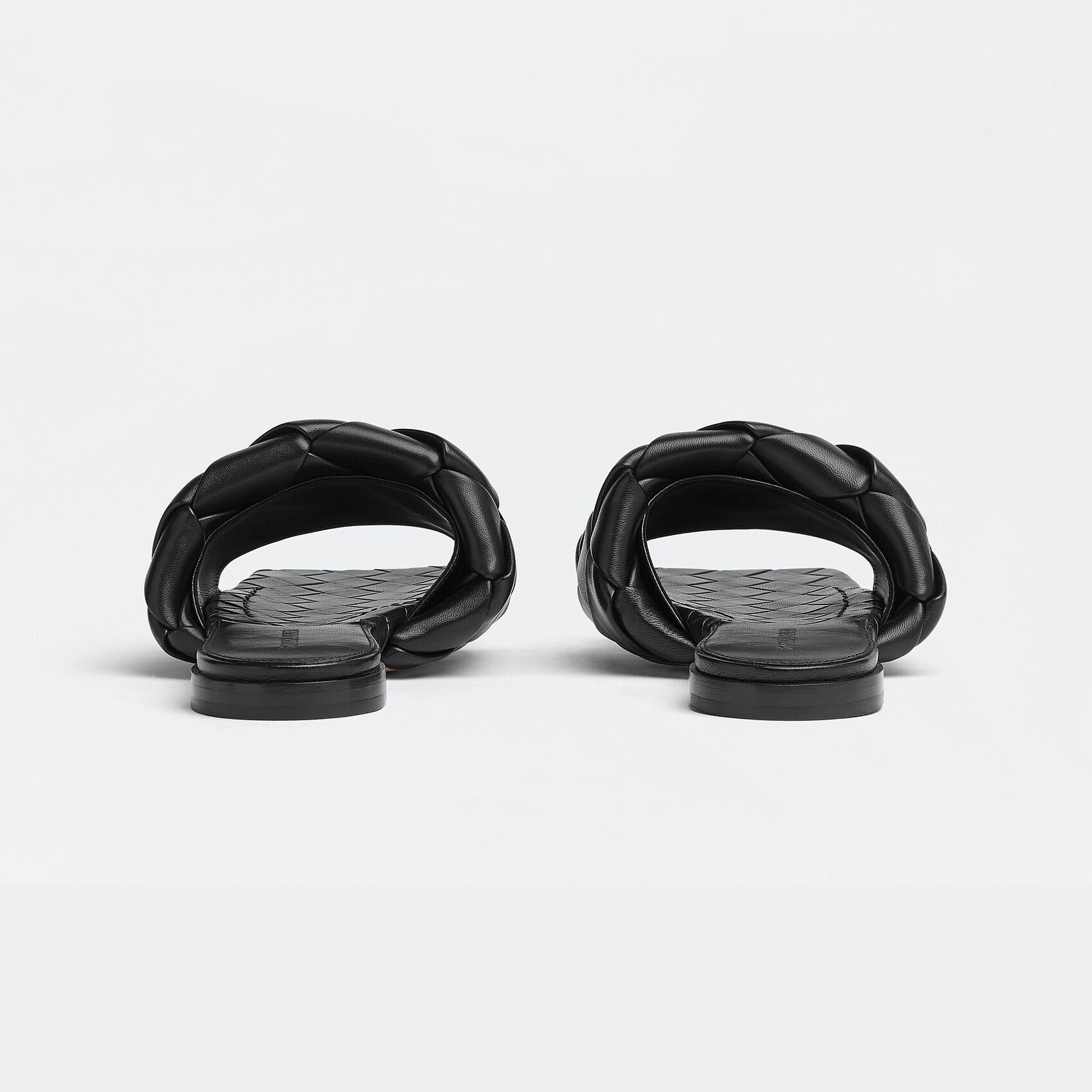 • Bottega Veneta Lido Flat Sandal In Black Intrecciato Leather Flat Sandal
