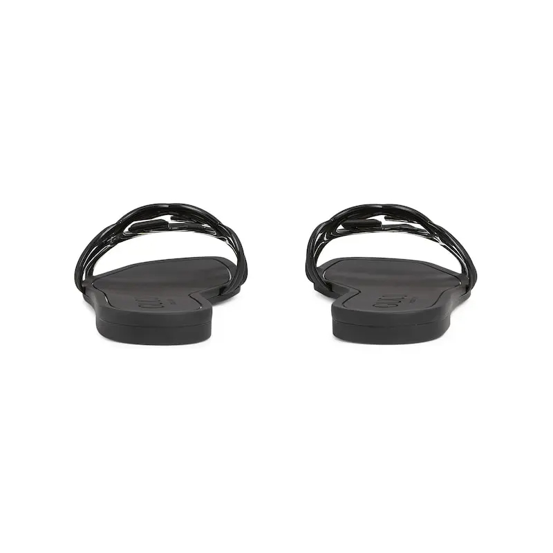 Gucci square head black flat bottom slippers