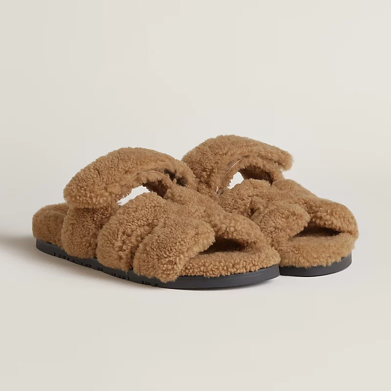 HERMES Chypre Coffee color plush Slippers
