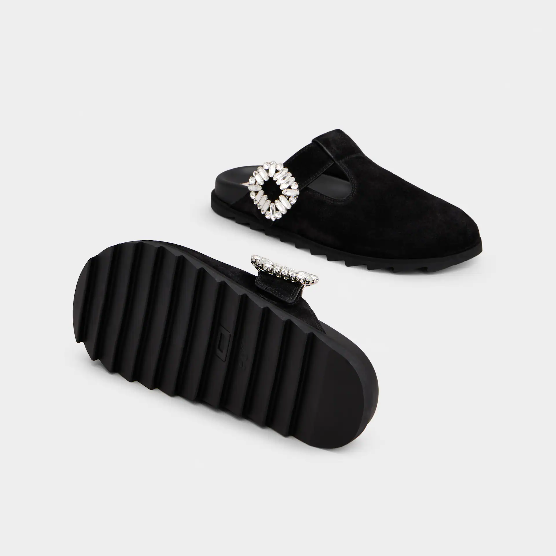 Roger Vivier Slidy Viv’ Mules Birkenstocks In Black Suede With Crystal Buckle
